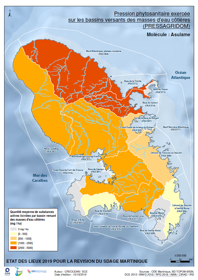 État des lieux 2019 – Pression phytosanitaire exercée sur les bassins versants des masses d'eau côtières (PRESSAGRIDOM) – Molécule : Asulame