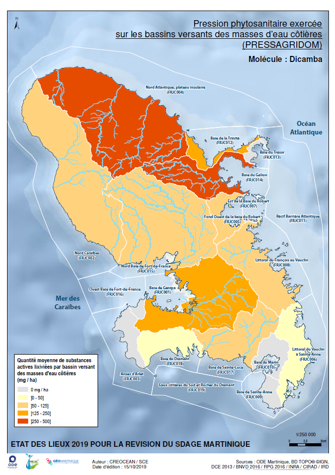 État des lieux 2019 – Pression phytosanitaire exercée sur les bassins versants des masses d'eau côtières (PRESSAGRIDOM) – Molécule : Dicamba