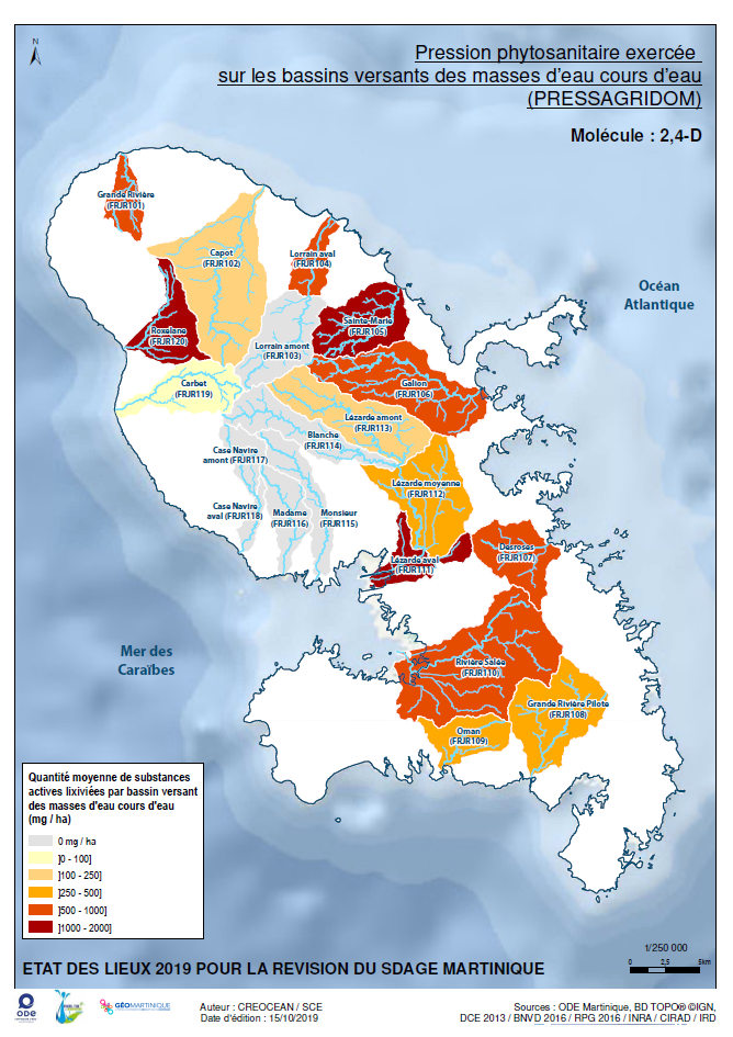 État des lieux 2019 – Pression phytosanitaire exercée sur les bassins versants des masses d'eau cours d'eau (PRESSAGRIDOM) – Molécule : 2,4-D
