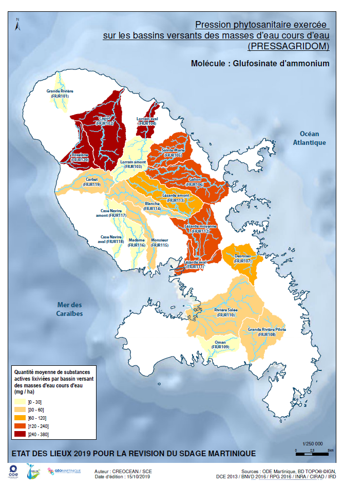 État des lieux 2019 – Pression phytosanitaire exercée sur les bassins versants des masses d'eau cours d'eau (PRESSAGRIDOM) – Molécule : Glufosinate d'ammonium
