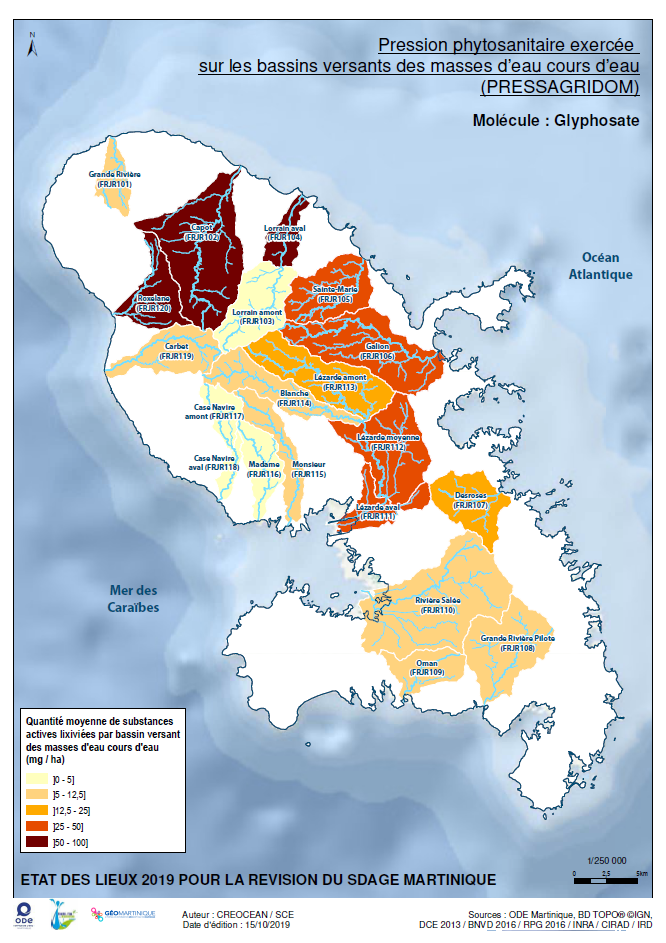 État des lieux 2019 – Pression phytosanitaire exercée sur les bassins versants des masses d'eau cours d'eau (PRESSAGRIDOM) – Molécule : Glyphosate