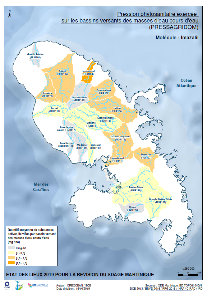 État des lieux 2019 – Pression phytosanitaire exercée sur les bassins versants des masses d'eau cours d'eau (PRESSAGRIDOM) – Molécule : Imazalil