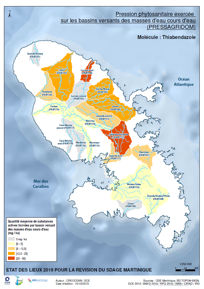État des lieux 2019 – Pression phytosanitaire exercée sur les bassins versants des masses d'eau côtières (PRESSAGRIDOM) – Molécule : Thiabendazole