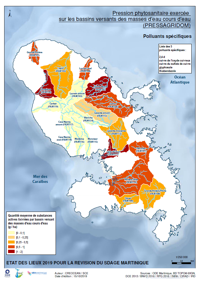 État des lieux 2019 – Pression phytosanitaire exercée sur les bassins versants des masses d'eau cours d'eau (PRESSAGRIDOM) – Polluants spécifiques