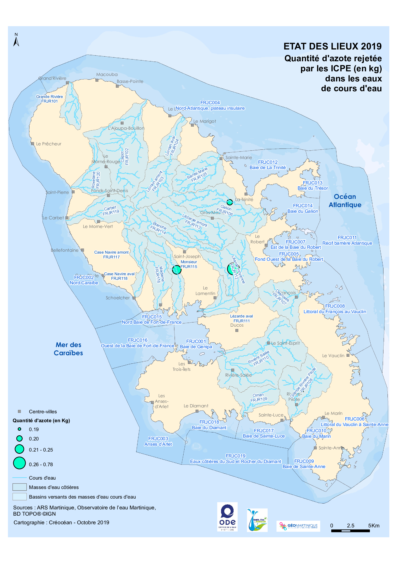 État des lieux 2019 – Quantité d'azote rejetée par les ICPE (en kg) dans les eaux de cours d'eau
