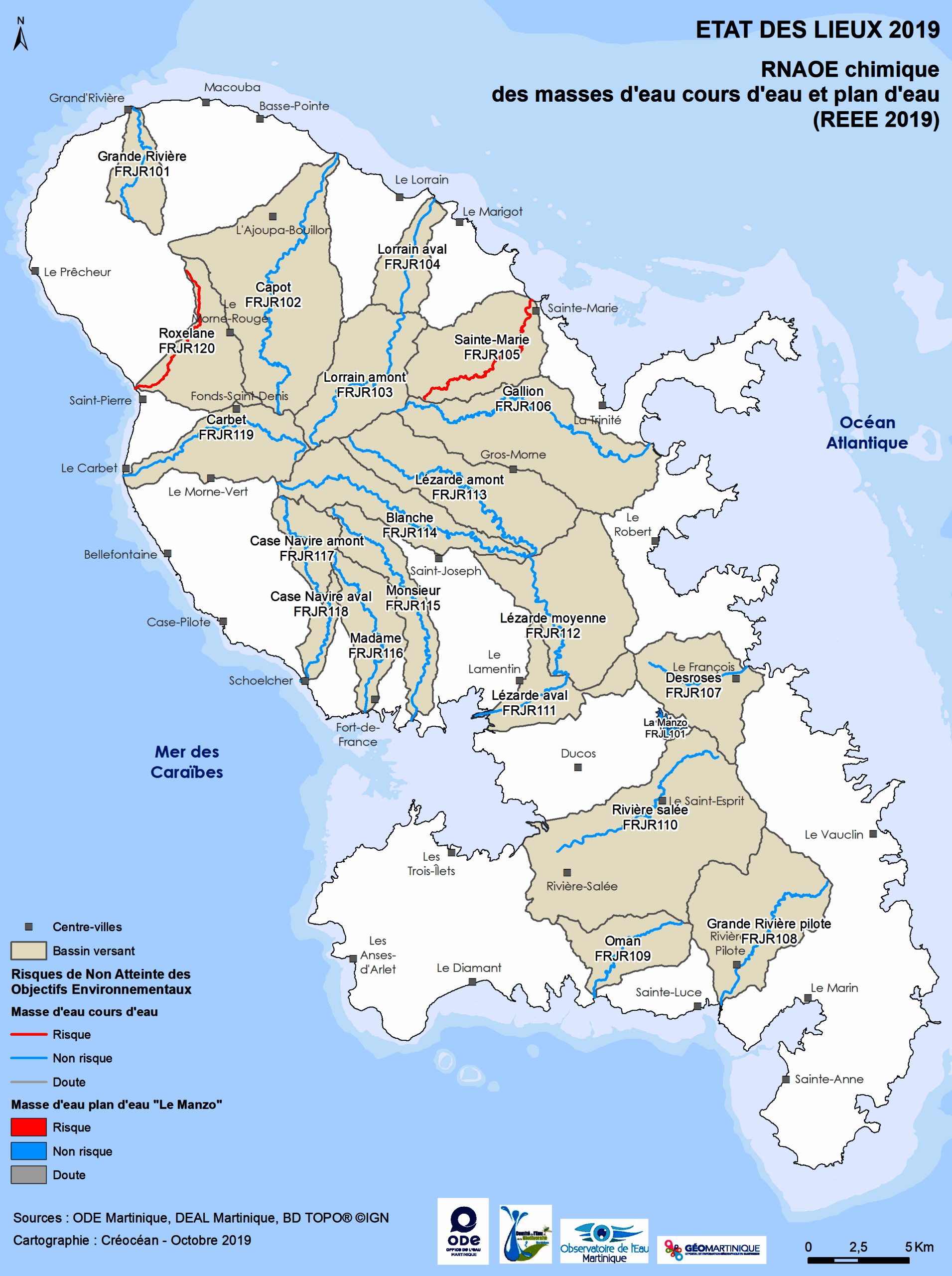 État des lieux 2019 – Risque de non atteinte des objectifs environnementaux (RNAOE) chimiques des masses d'eau cours d'eau et plan d'eau (REEE 2019)