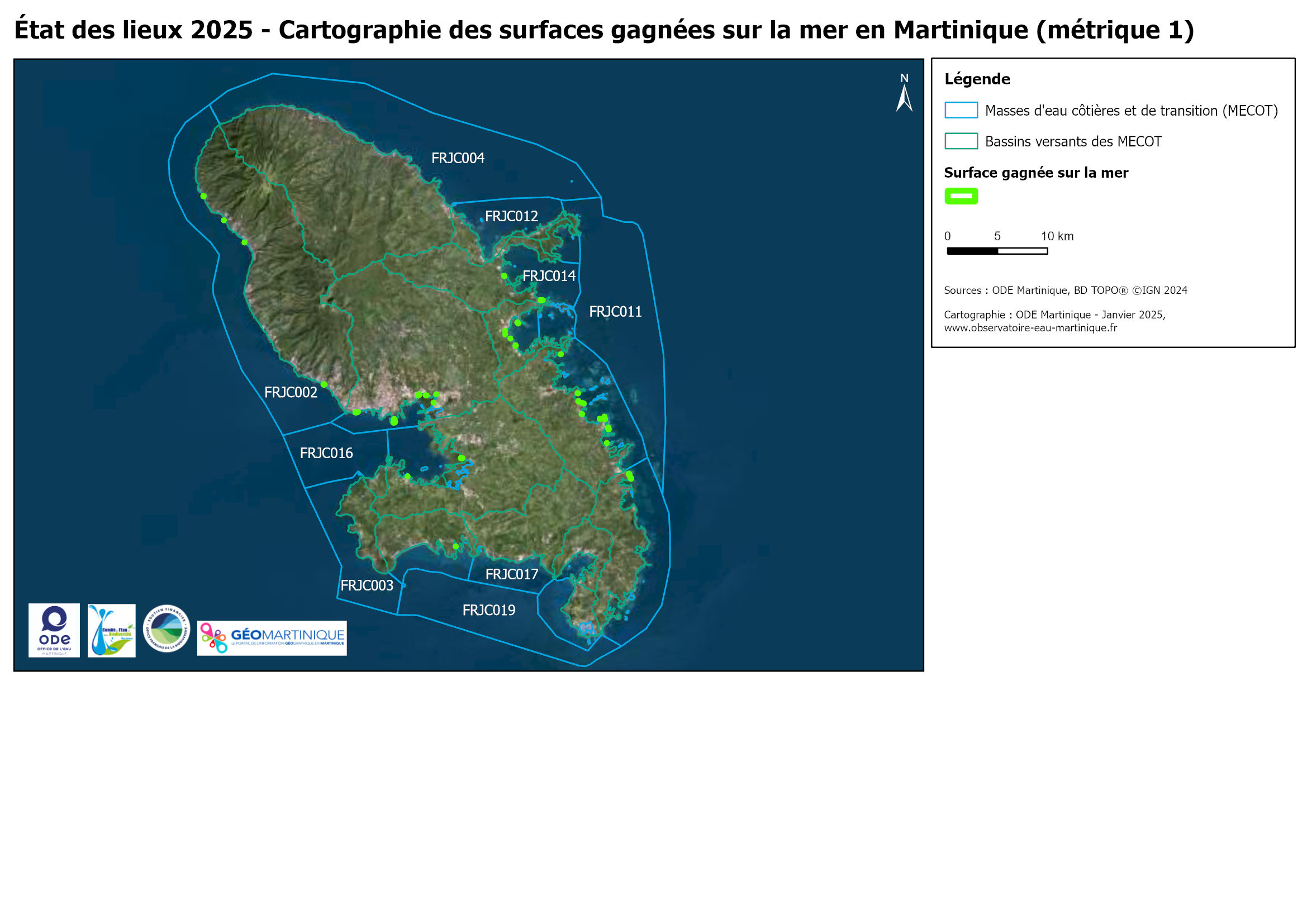 État des lieux 2025 – Cartographie des surfaces gagnées sur la mer en Martinique (métrique 1 de l'état hydromorphologique des masses d'eau littorales)