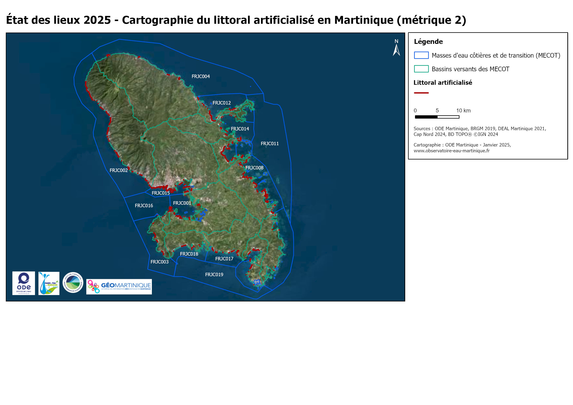 État des lieux 2025 – Cartographie du littoral artificialisé en Martinique (métrique 2 de l'état hydromorphologique des masses d'eau littorales)
