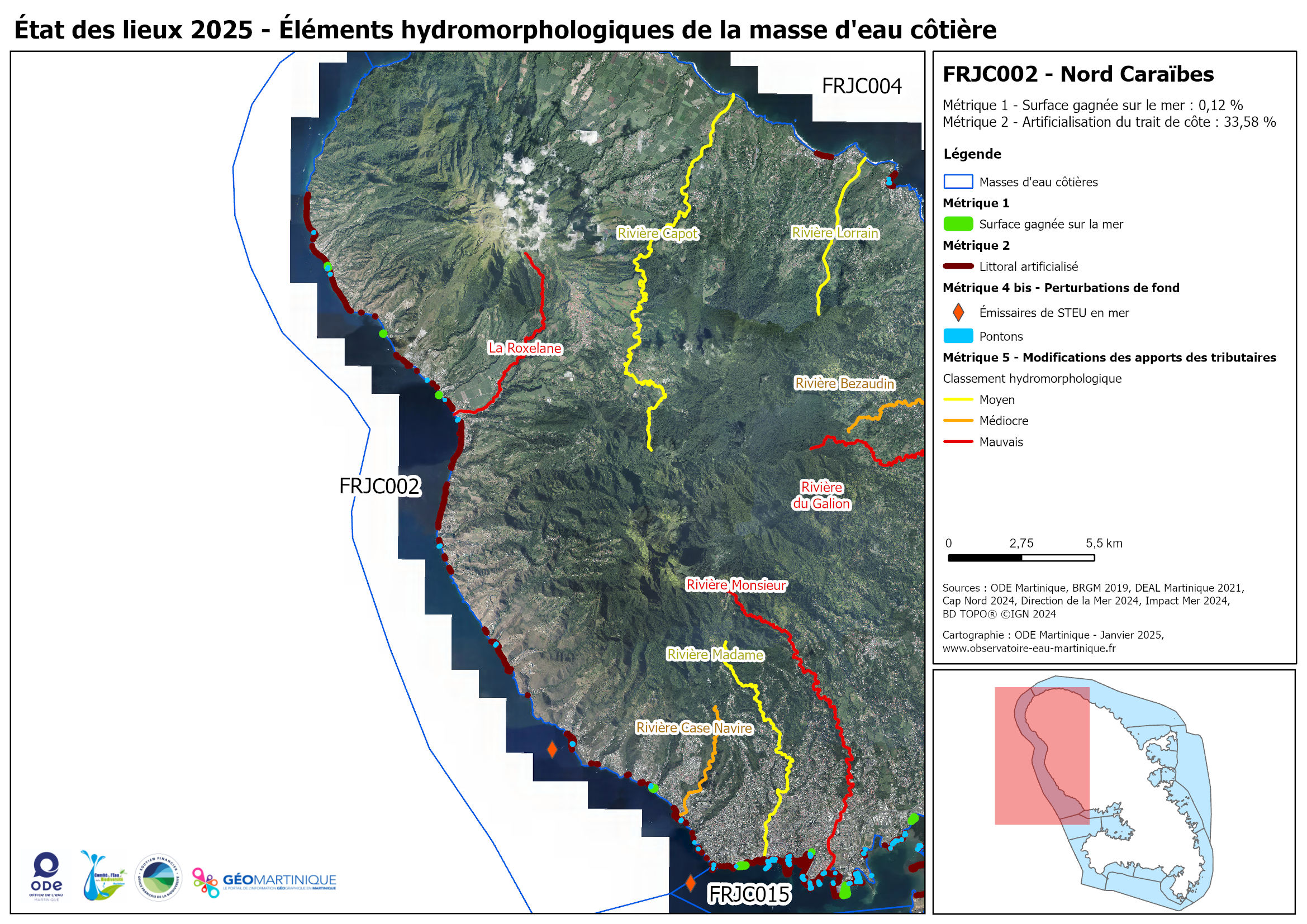 État des lieux 2025 – Éléments hydromorphologiques de la masse d'eau côtière FRJC002 – Nord Caraïbes