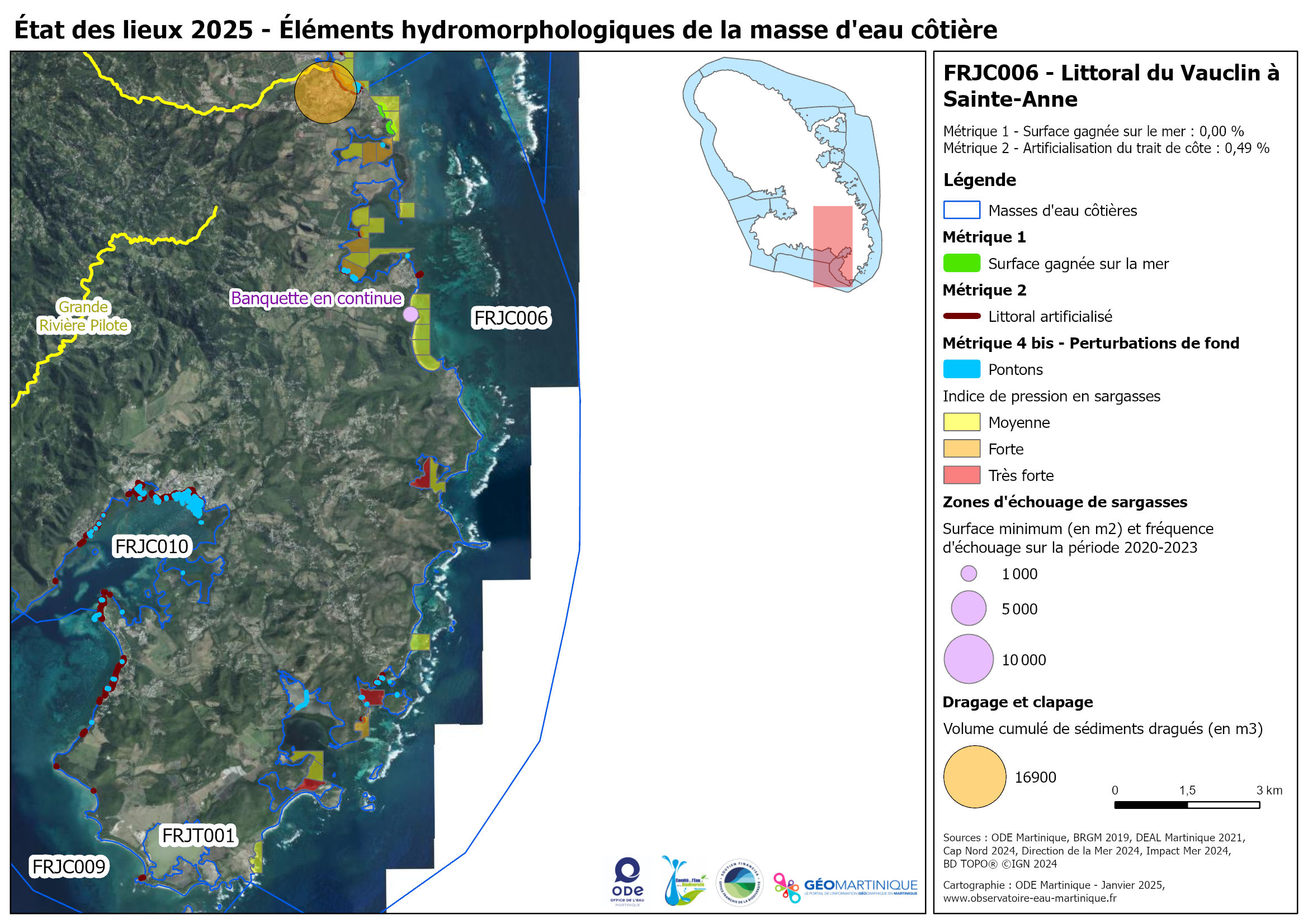État des lieux 2025 – Éléments hydromorphologiques de la masse d'eau côtière FRJC006 – Littoral du Vauclin à Sainte-Anne