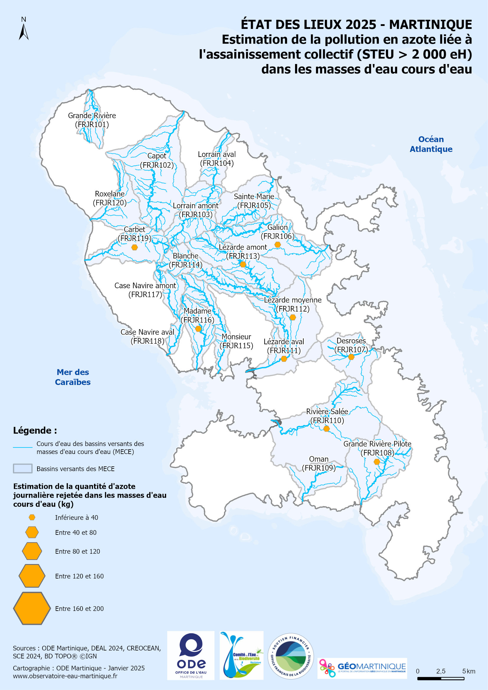 État des lieux 2025 – Estimation de la pollution en azote liée à l'assainissement collectif (STEU > 2 000 eH) dans les masses d'eau cours d'eau