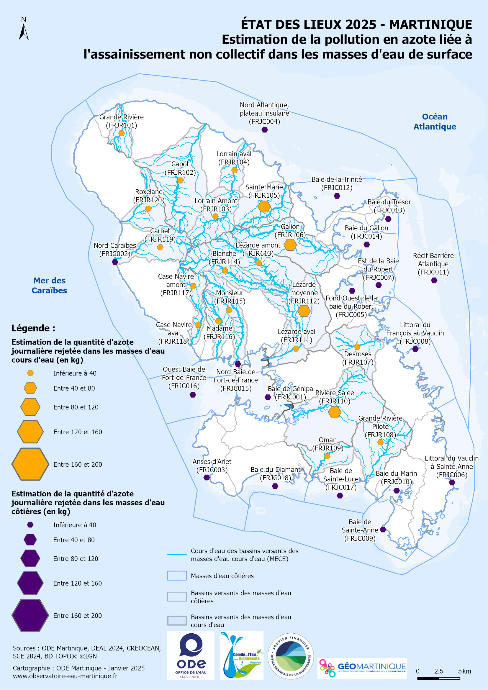 Thématiques : État des lieux 2025, assainissement non collectif, masses d’eau littorales, masses d’eau cours d’eau