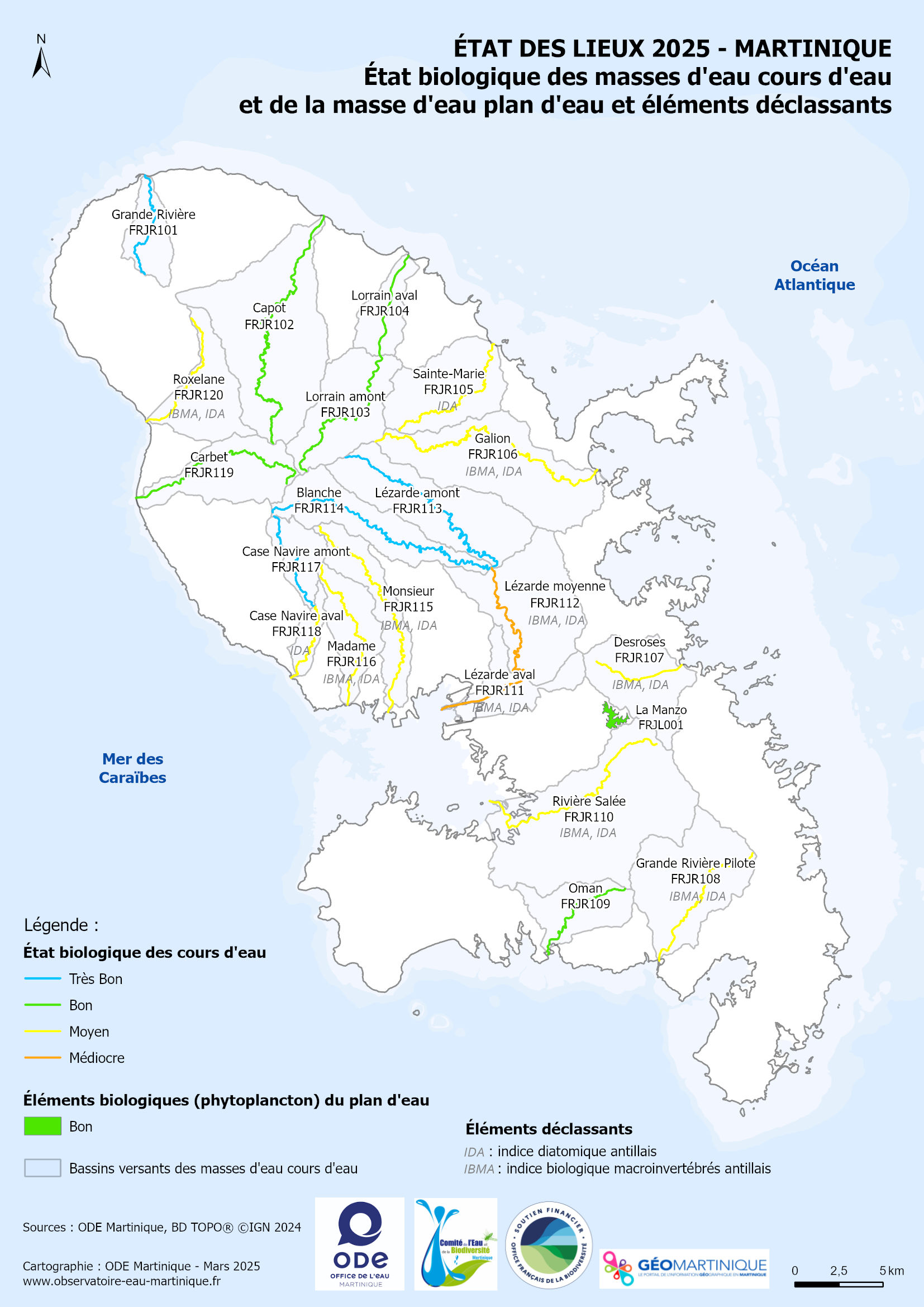 État des lieux 2025 – État biologique des masses d'eau cours d'eau et de la masse d'eau plan d'eau et éléments déclassants