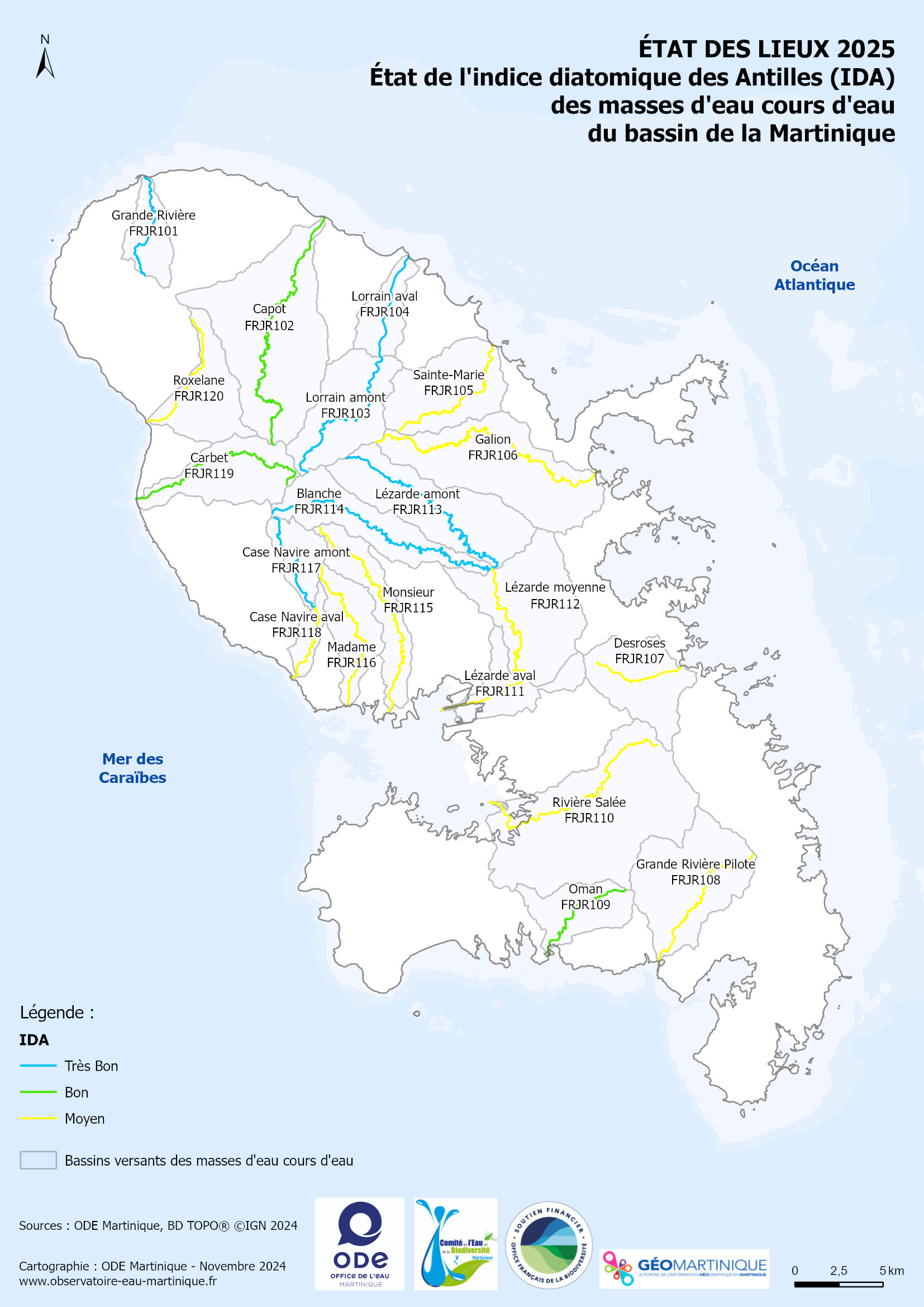 État des lieux 2025 – État de l'indice diatomique des Antilles (IDA) des masses d'eau cours d'eau