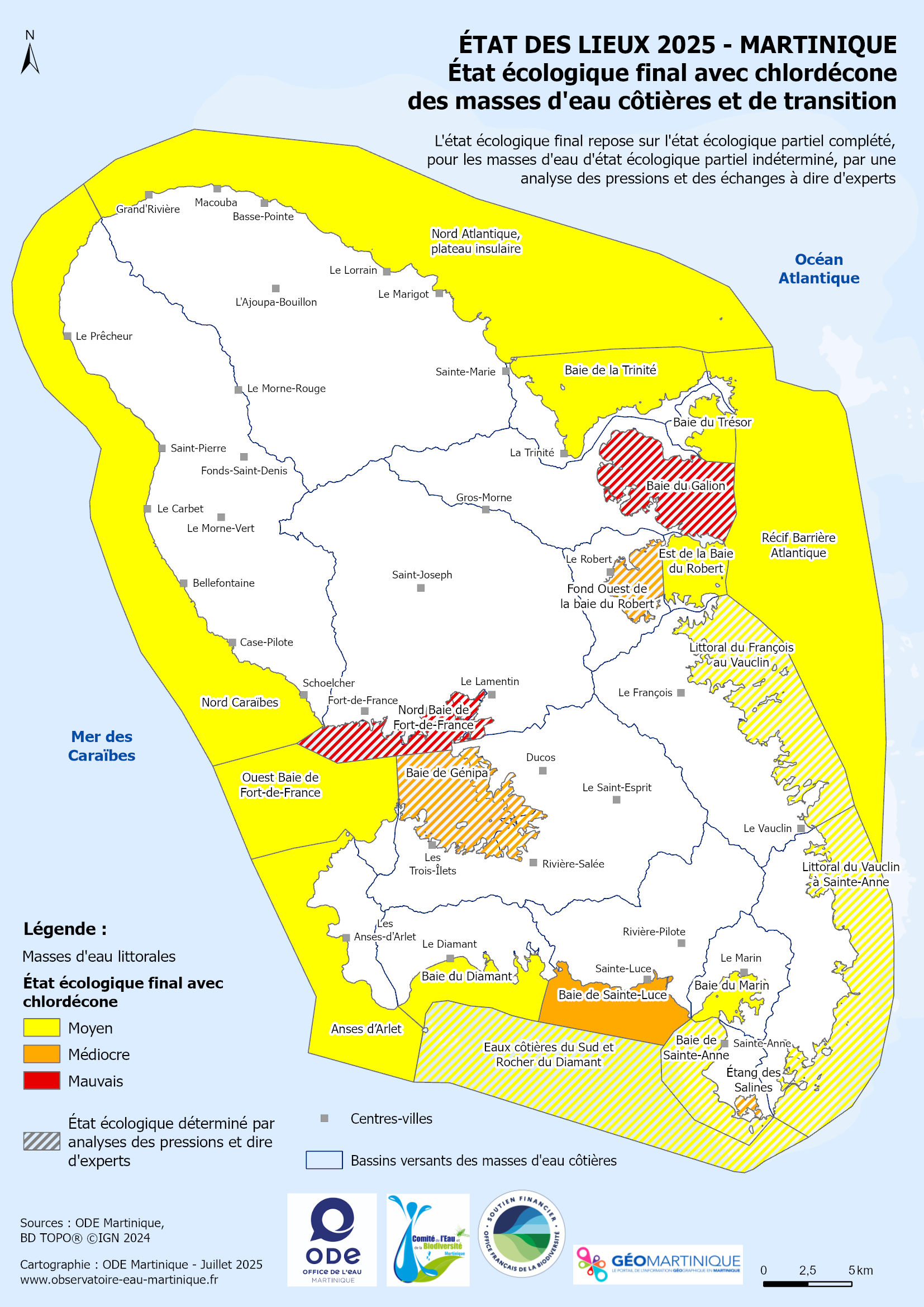 État des lieux 2025 – État écologique final avec chlordécone des masses d'eau côtières et de transition