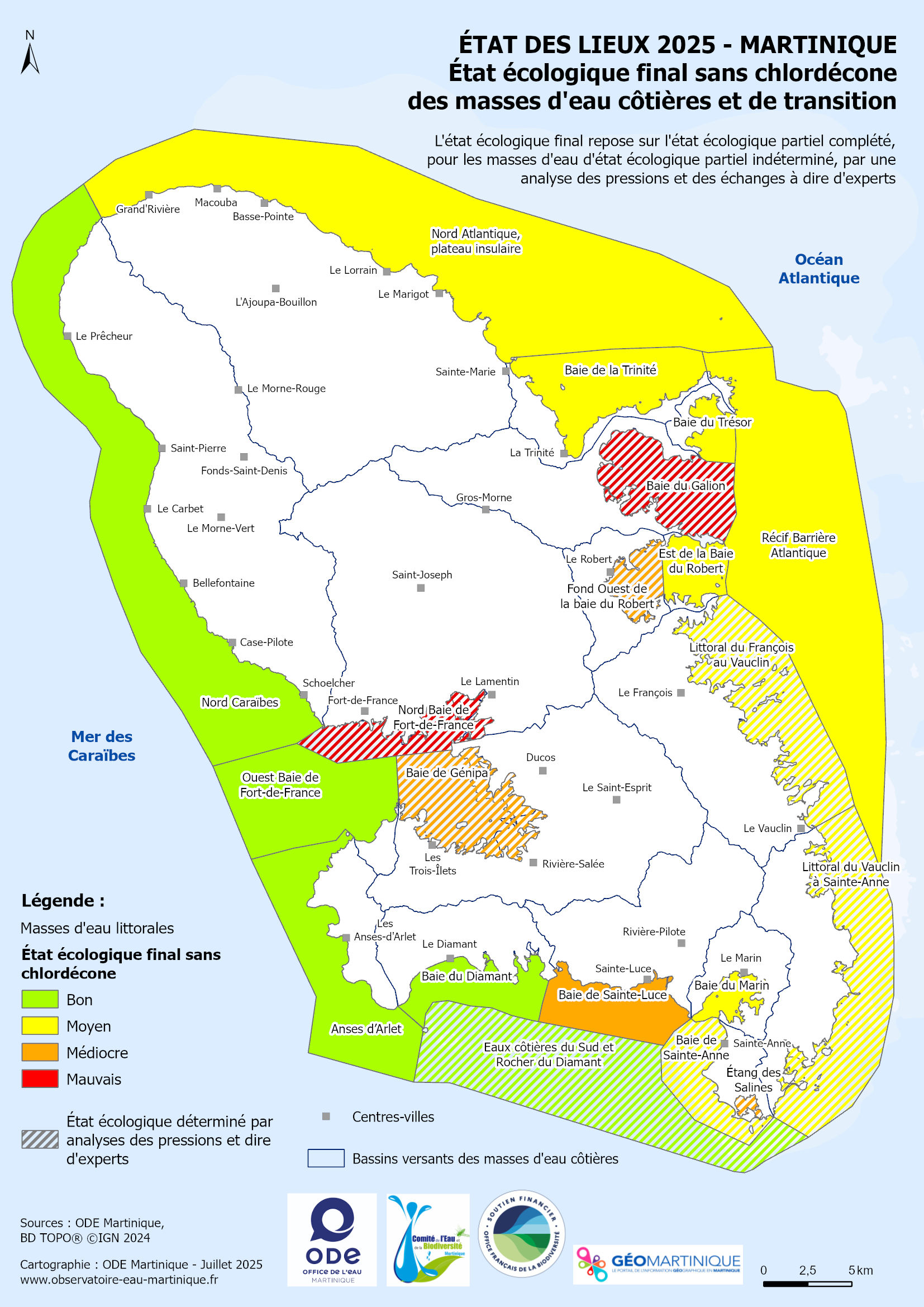 État des lieux 2025 – État écologique final sans chlordécone des masses d'eau côtières et de transition