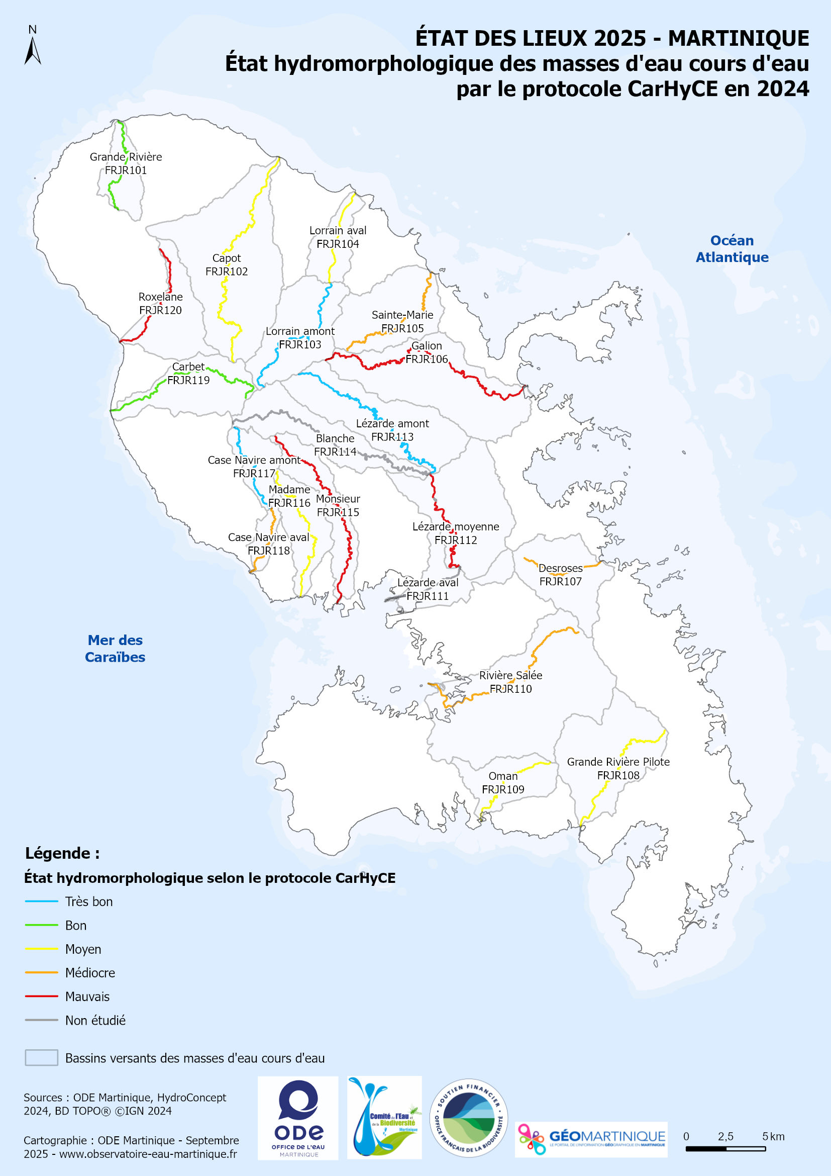 État des lieux 2025 -État hydromorphologique des masses d'eau cours d'eau par le protocole CarHyCE en 2024