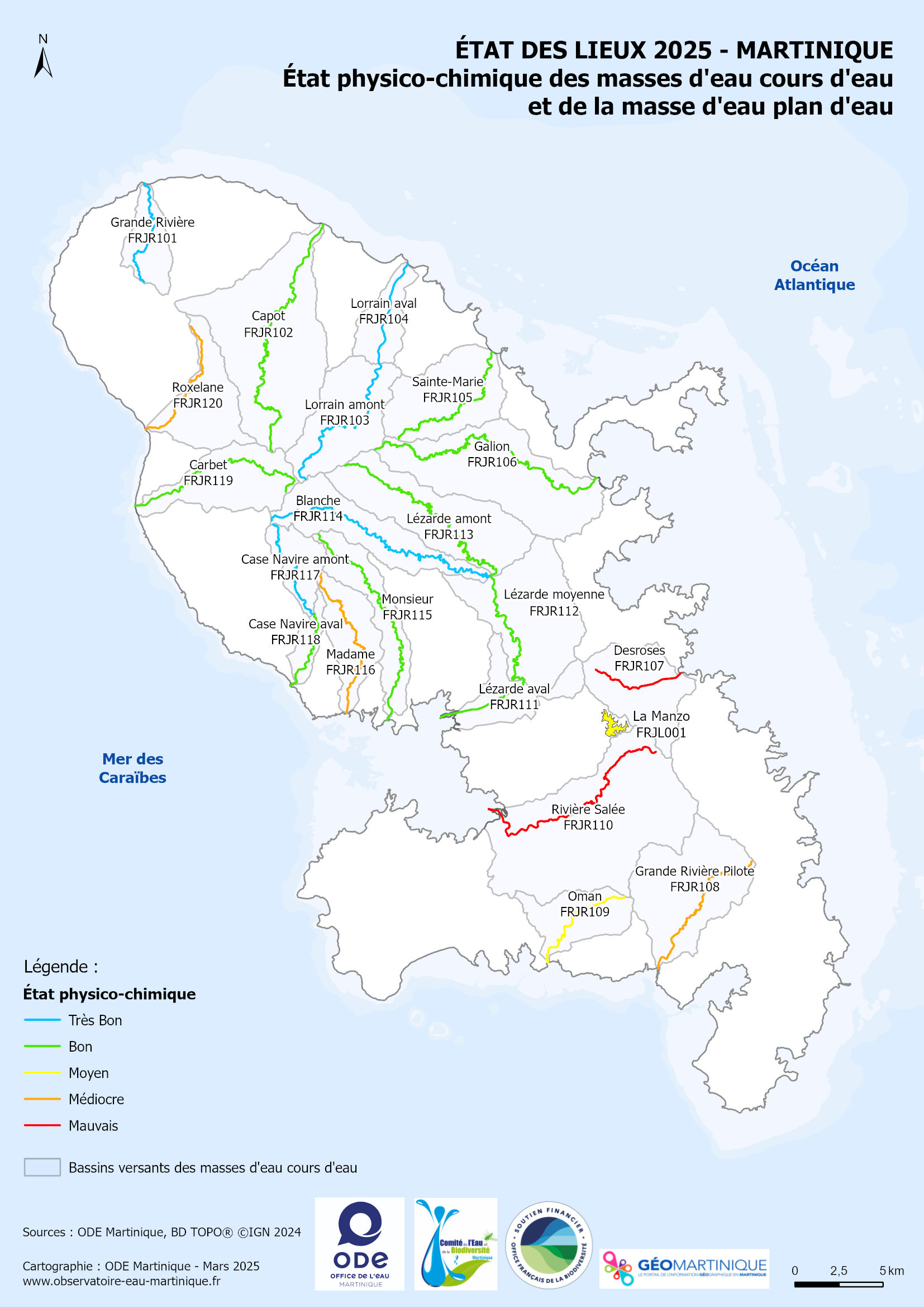 État des lieux 2025 – État physico-chimique des masses d'eau cours d'eau et de la masse d'eau plan d'eau