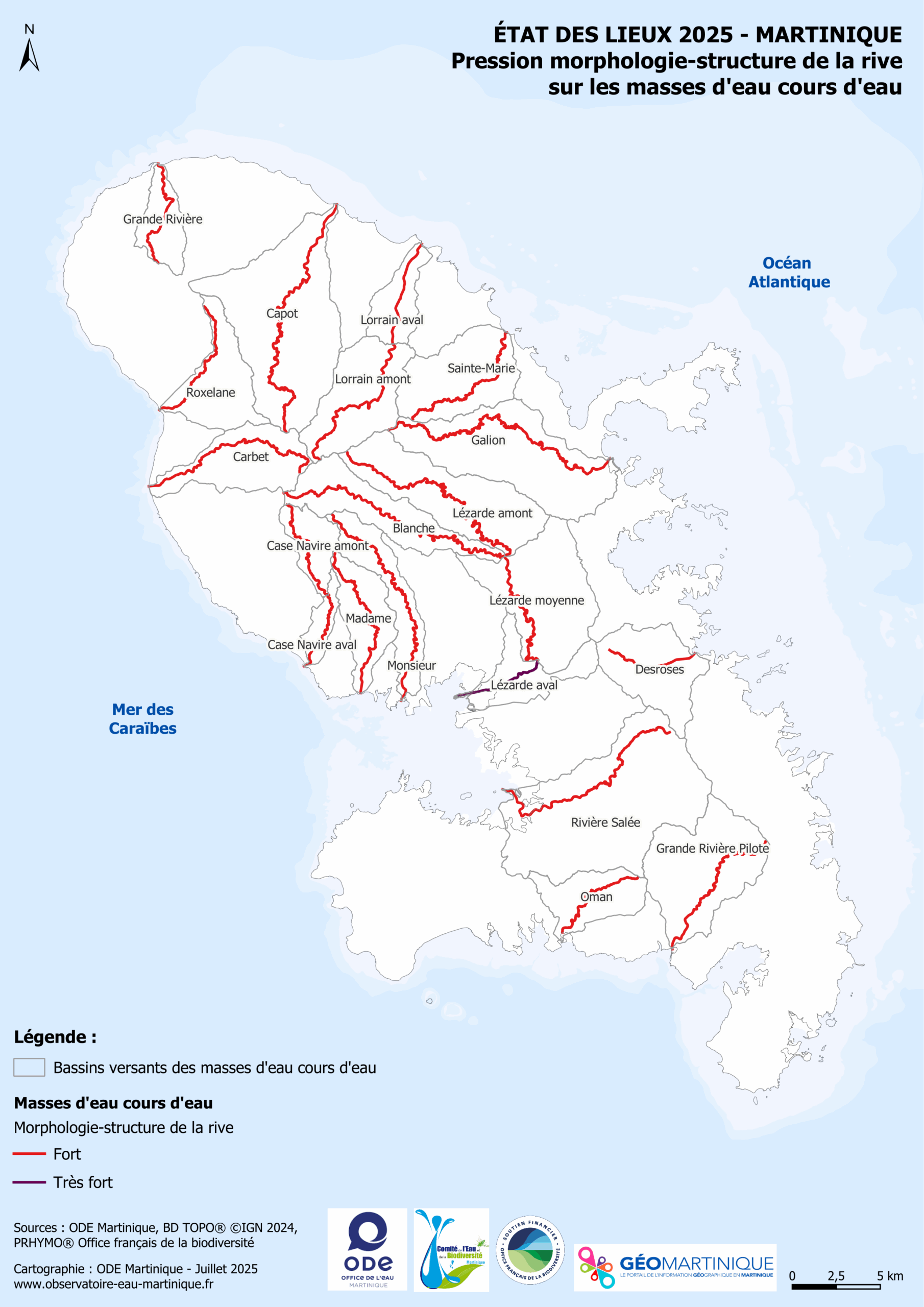 État des lieux 2025 – Pression morphologie-structure de la rive sur les masses d'eau cours d'eau