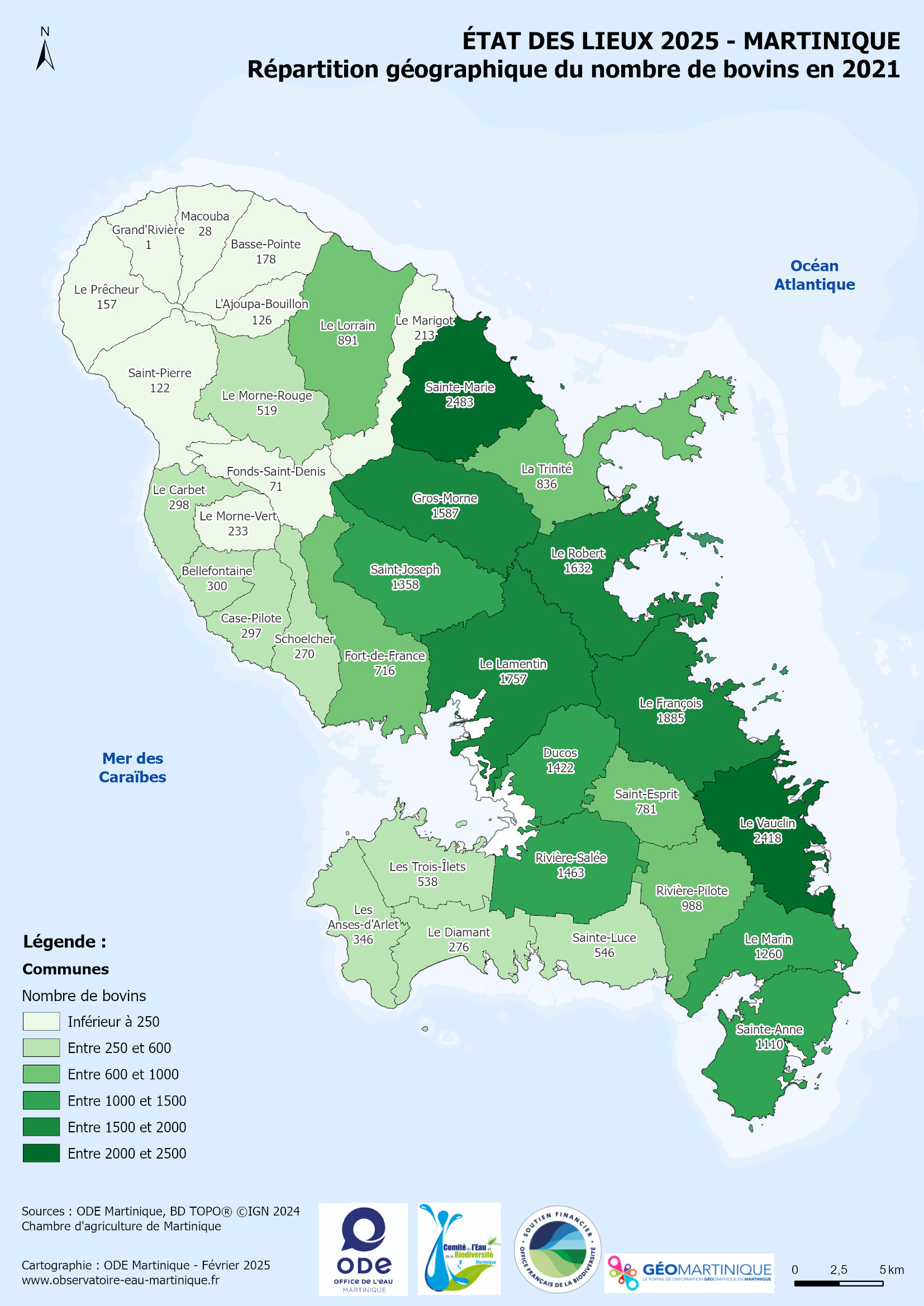 État des lieux 2025 – Répartition géographique du nombre de bovins en 2021