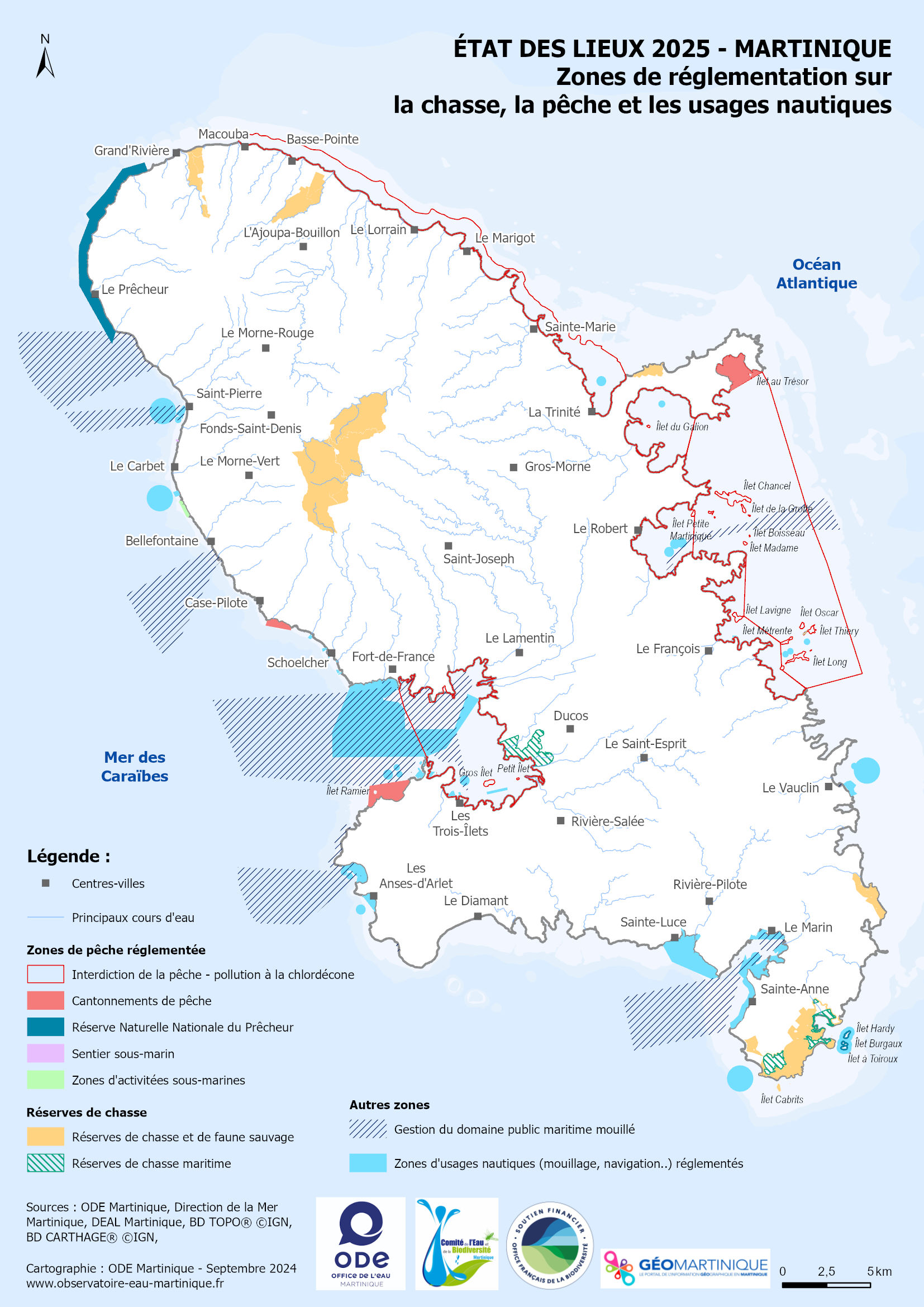 État des lieux 2025 – Zones de réglementation sur la chasse, la pêche et les usages nautiques