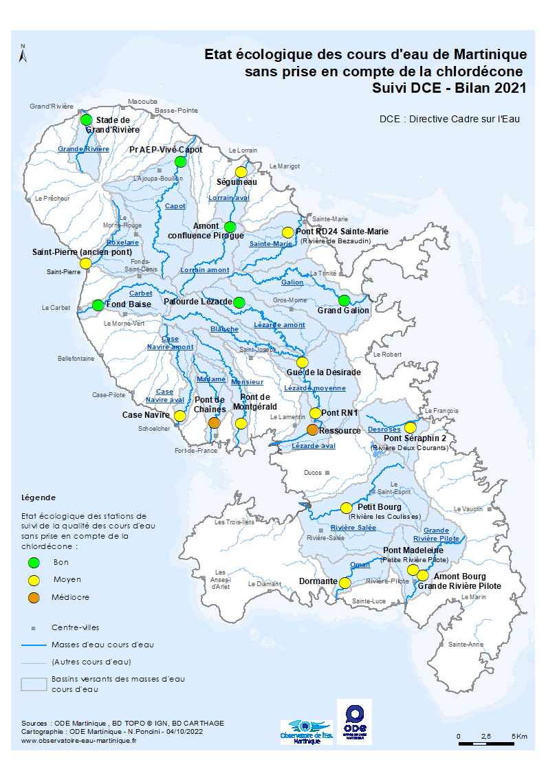 État écologique des cours d'eau de Martinique avec prise en compte de la chlordécone – Suivi DCE – Bilan 2021