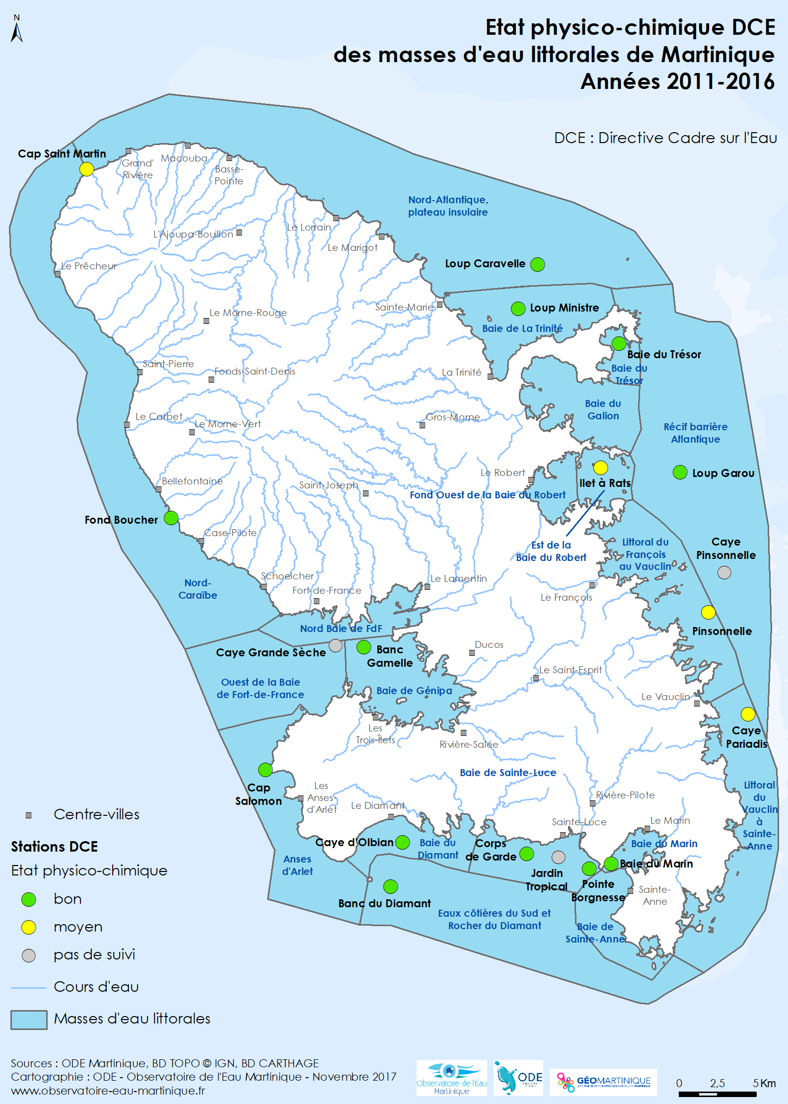 Etat physico-chimique DCE des masses d'eau littorales de Martinique – Années 2011-2016