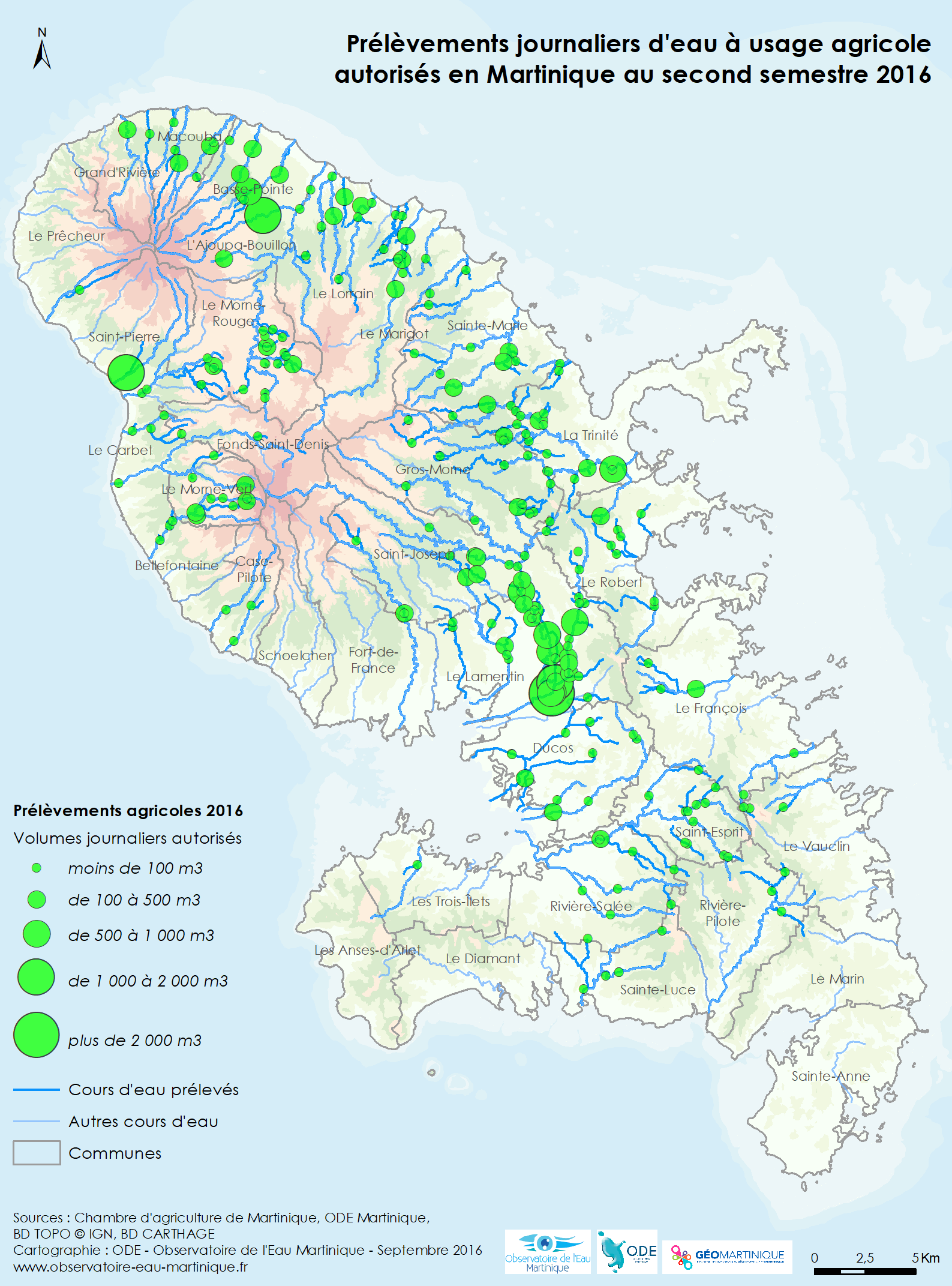 Prélèvements d'eau à usage agricole autorisés en Martinique au second semestre 2016