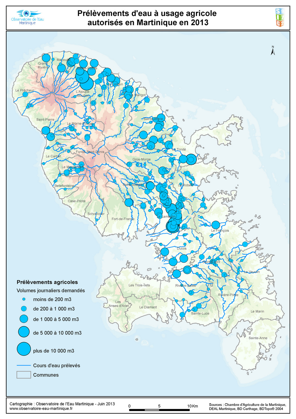 Prélèvements d'eau à usage agricole autorisés en Martinique en 2013