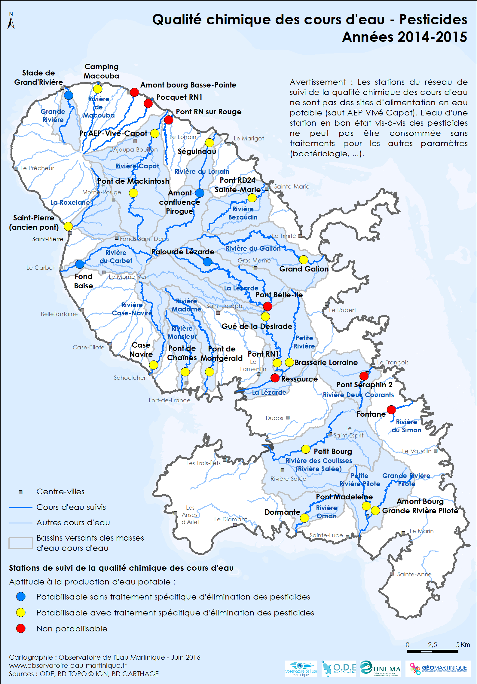 Qualité chimique des cours d'eau de Martinique – Pesticides – années 2014-2015