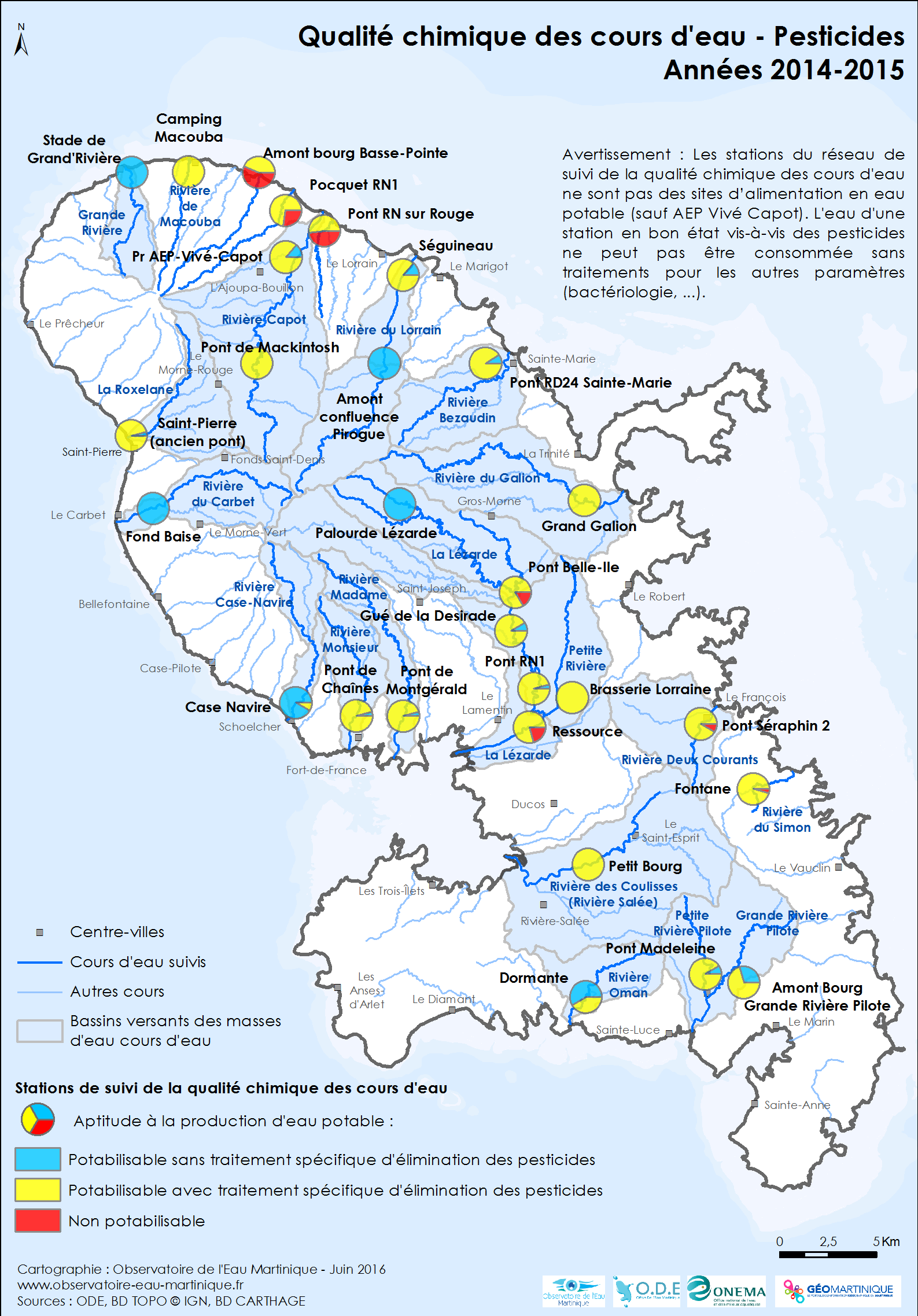 Qualité chimique des cours d'eau de Martinique – Pesticides (détail par station) – années 2014-2015