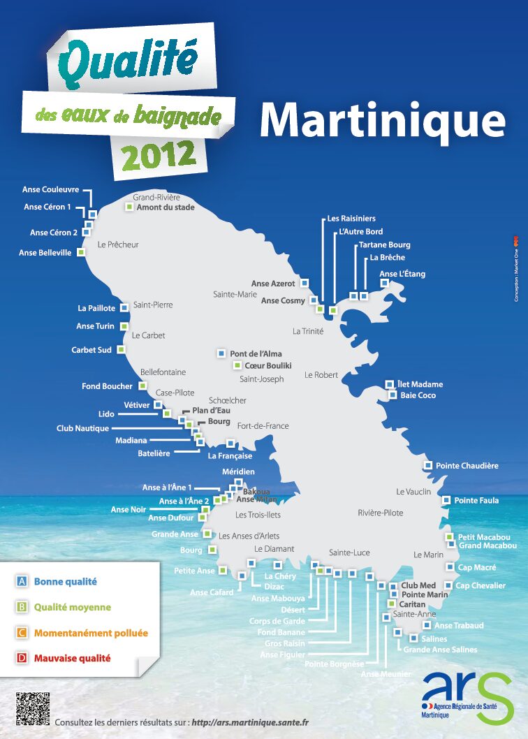 Résumé : Le bilan de la qualité des eaux de baignade en mer et en rivière de la Martinique pour l’année 2012.