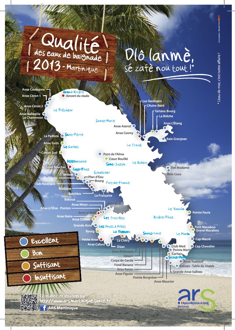 Résumé : Le bilan de la qualité des eaux de baignade en mer et en rivière de la Martinique pour l’année 2013.