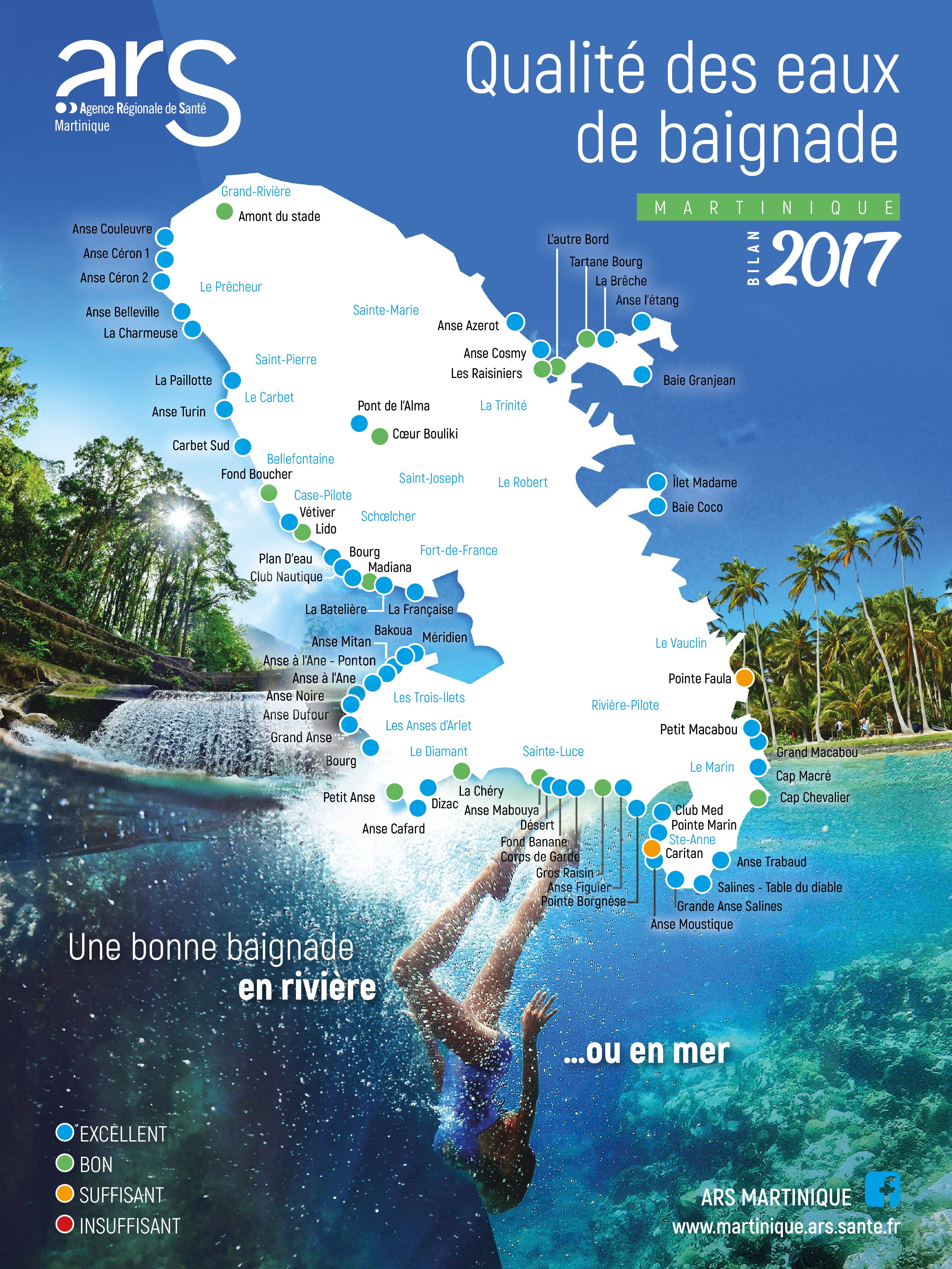 Résumé : Le bilan de la qualité des eaux de baignade en mer et en rivière de la Martinique pour l’année 2017.