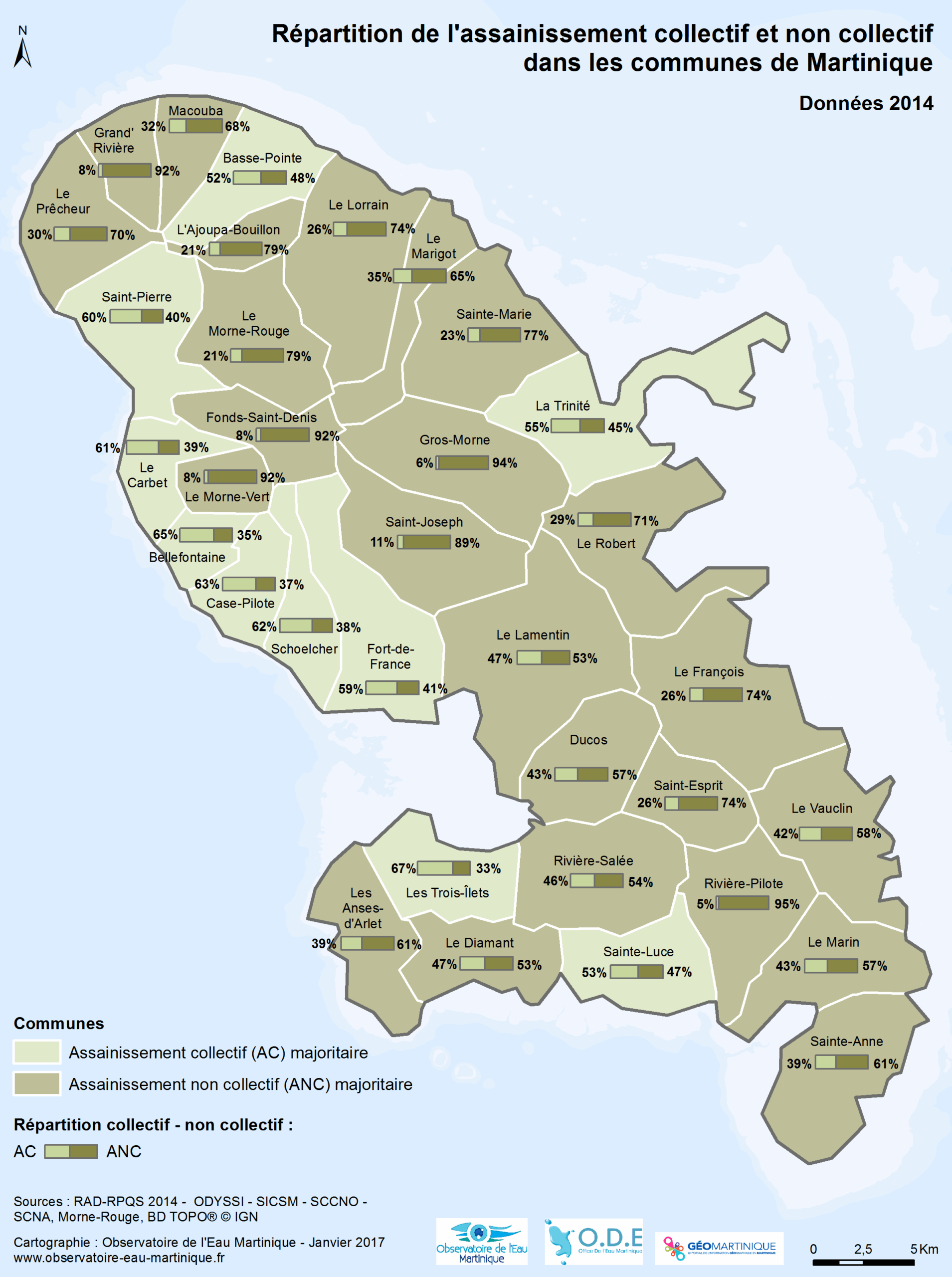 Répartition assainissement collectif – non collectif en Martinique en 2014