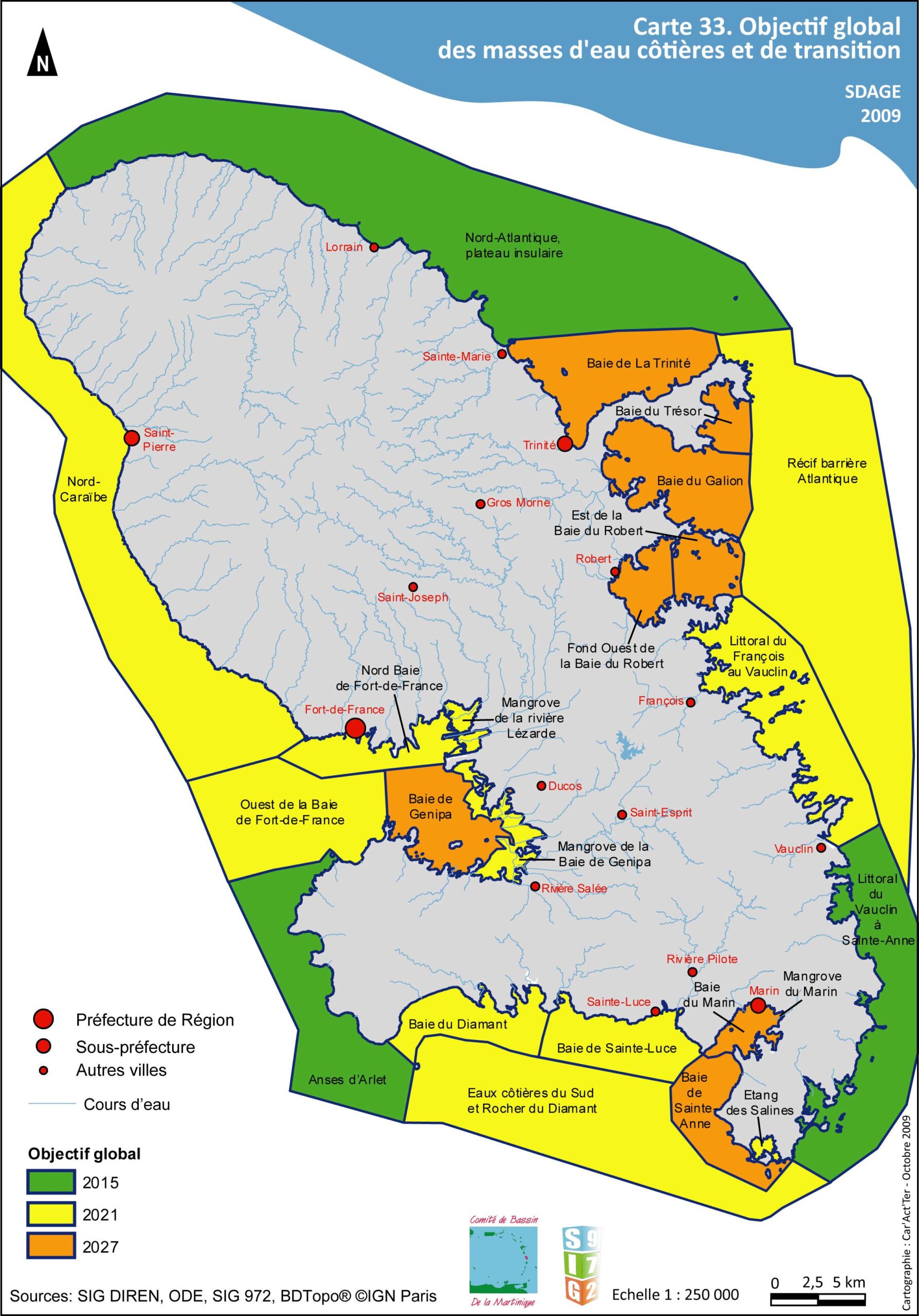 SDAGE 2010-2015 – Objectif global des masses d'eau littorales