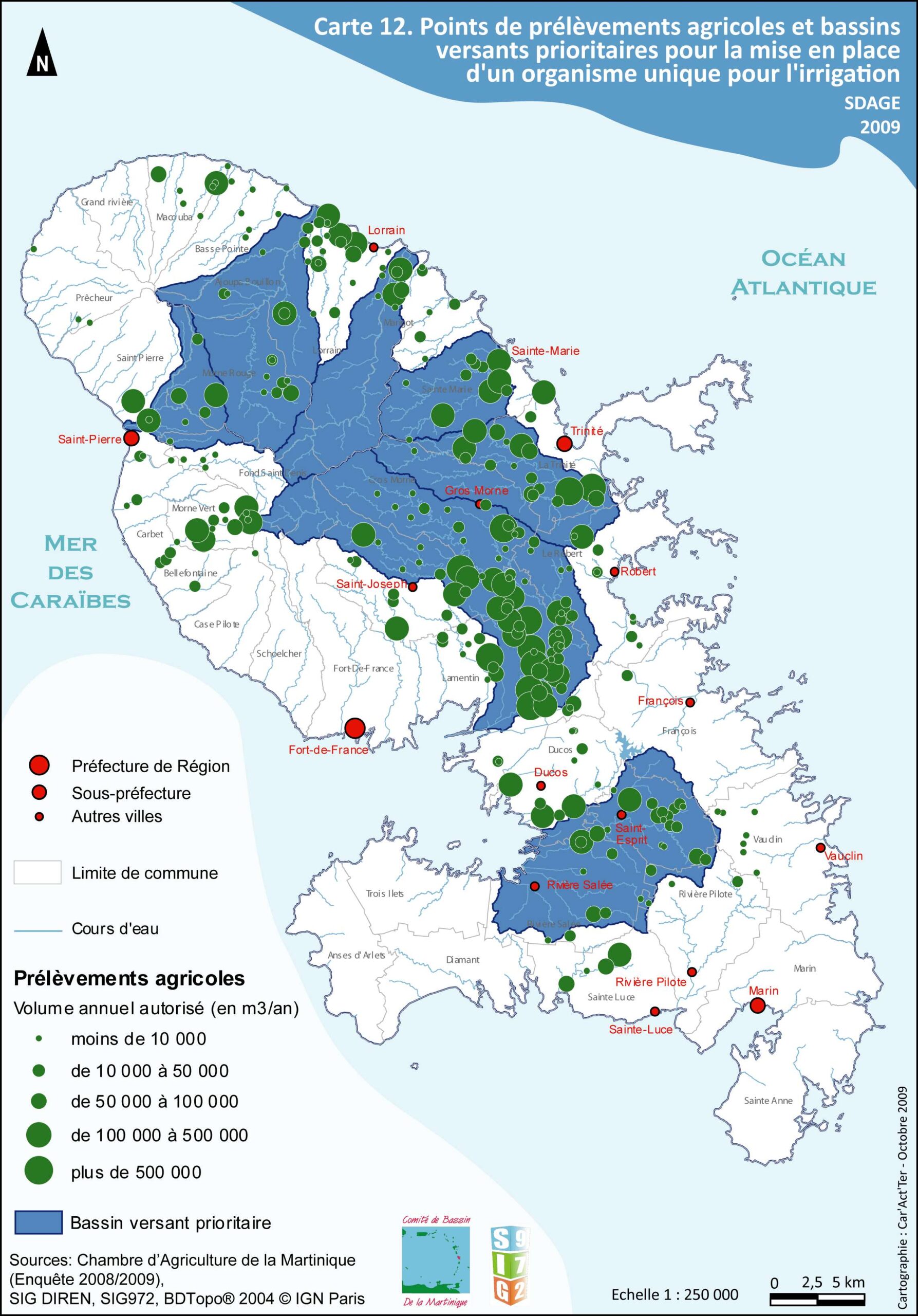 SDAGE 2010-2015 – Points de prélèvements agricoles et bassins versants prioritaires pour la mise en place d'un organisme unique pour l'irrigation