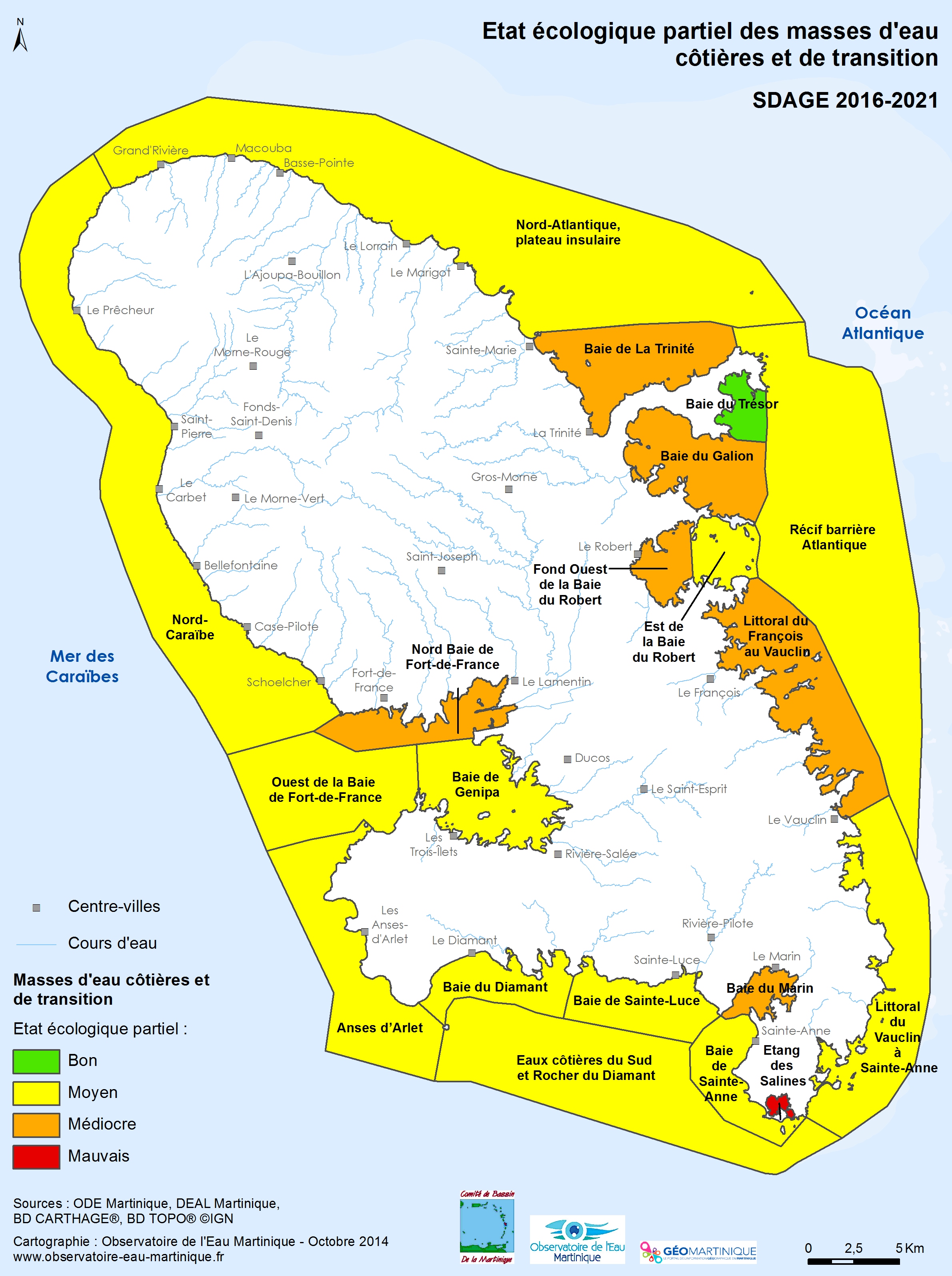 SDAGE 2016-2021 – État écologique partiel des masses d'eau côtières et de transition