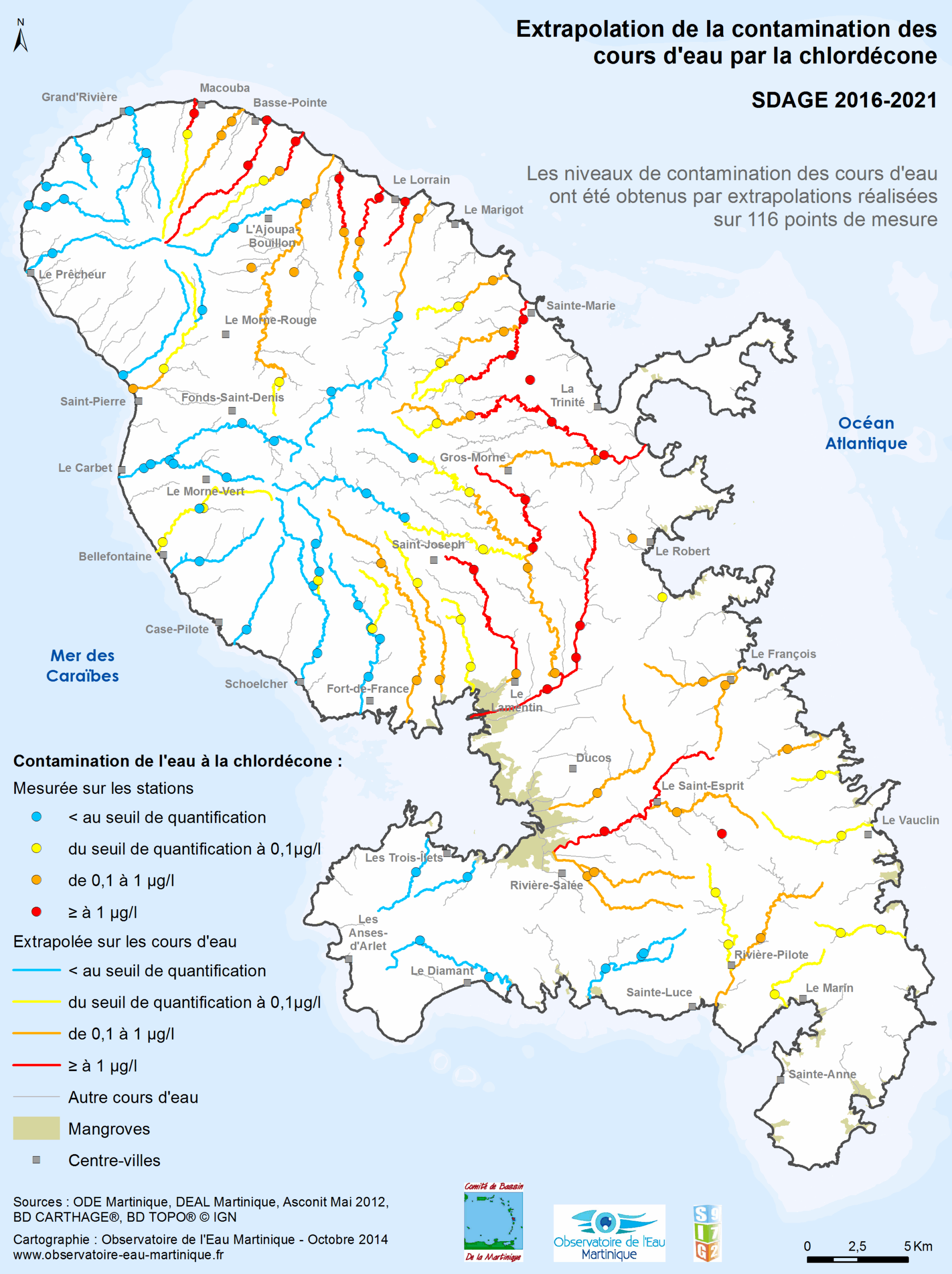 SDAGE 2016-2021 – Extrapolation de la contamination des cours d'eau par la chlordécone
