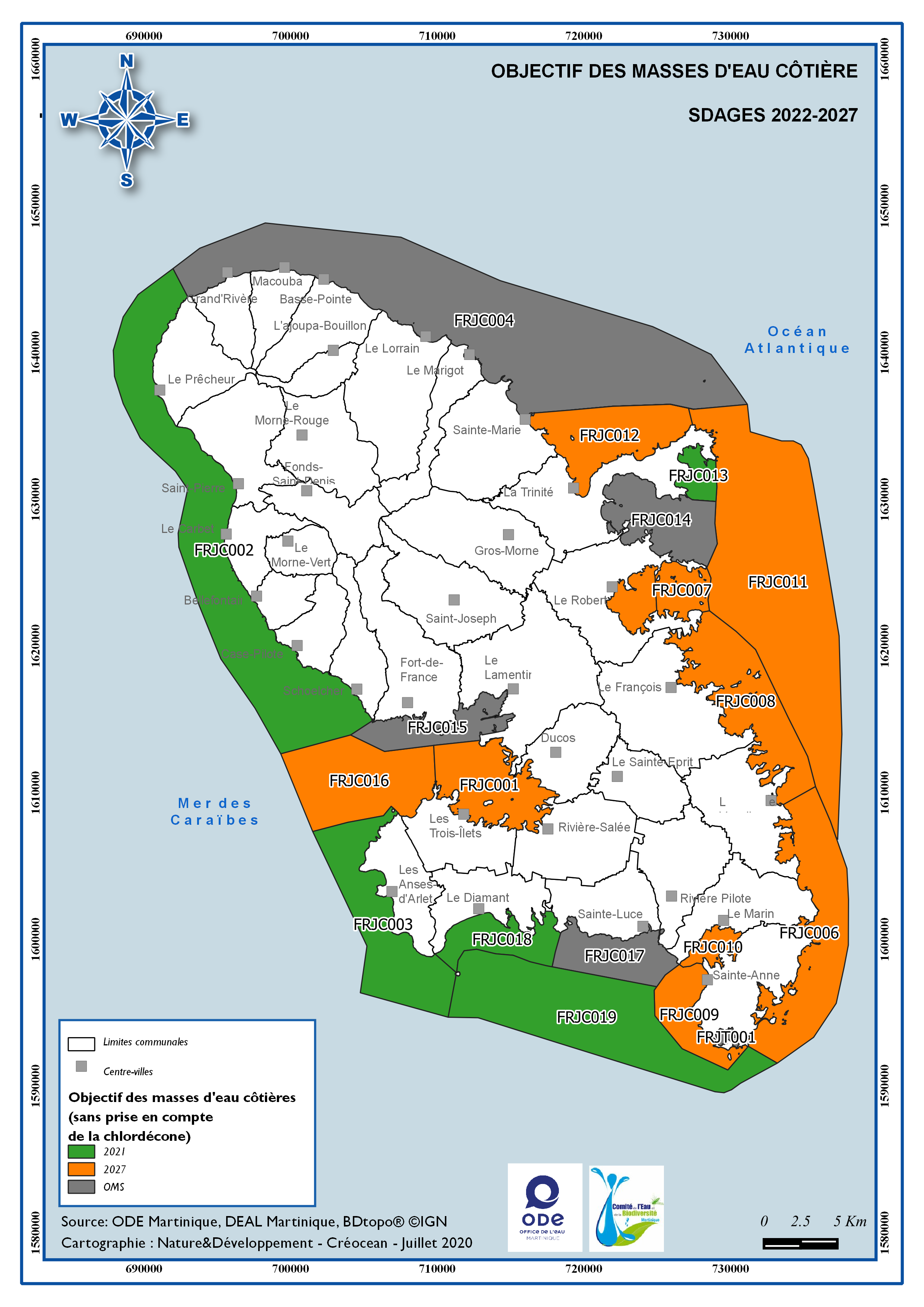 SDAGE 2022-2027 – Objectif des masses d'eau côtière sans chlordécone