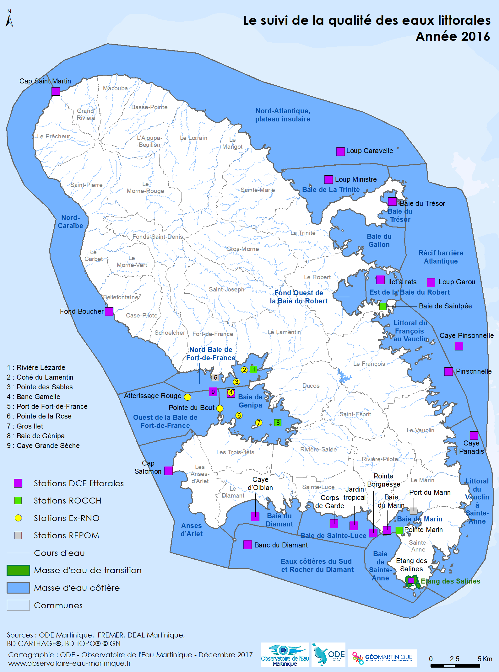 Stations de suivi de la qualité des eaux littorales de Martinique – Année 2016