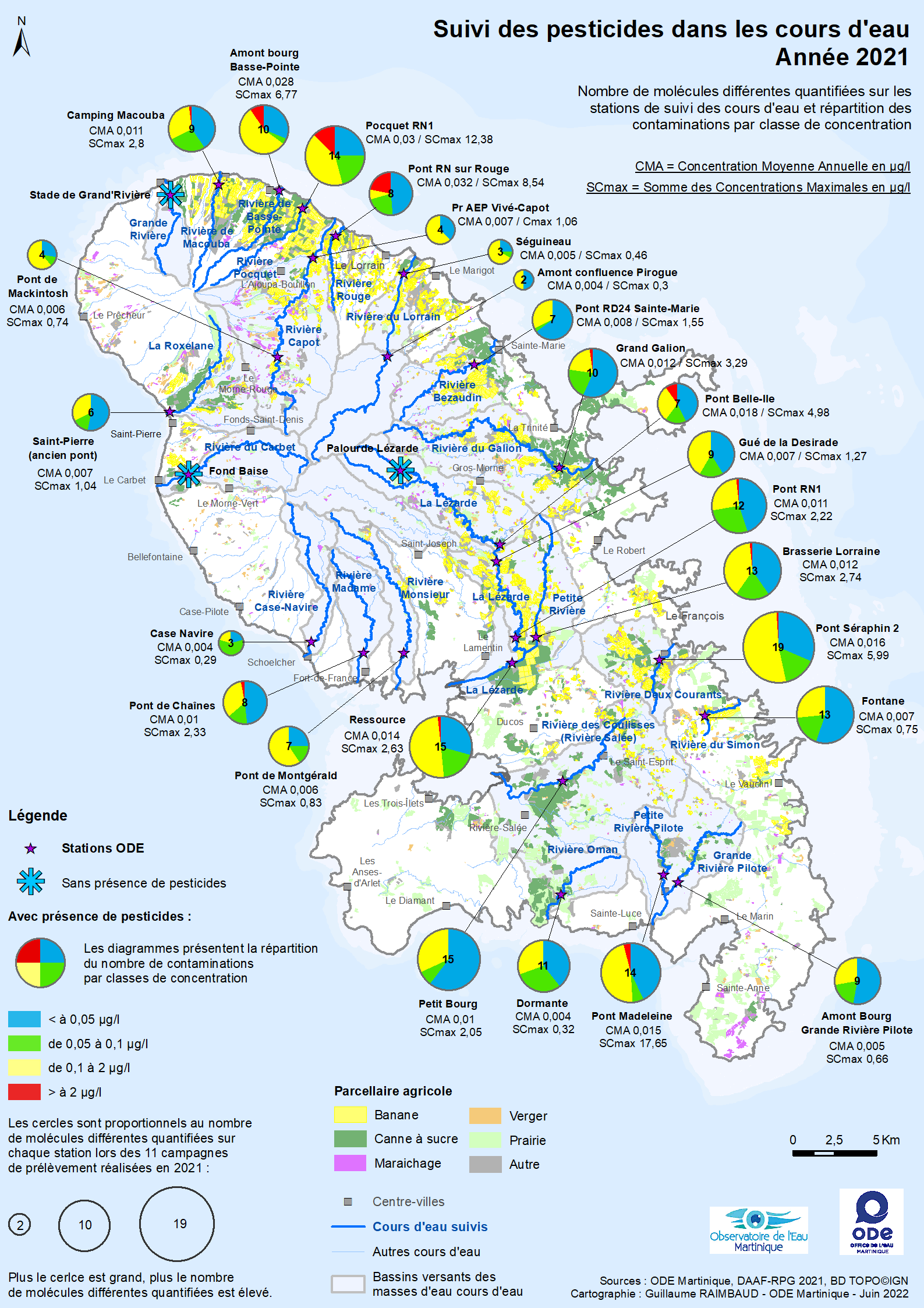 Suivi des pesticides dans les cours d'eau de Martinique – Année 2021