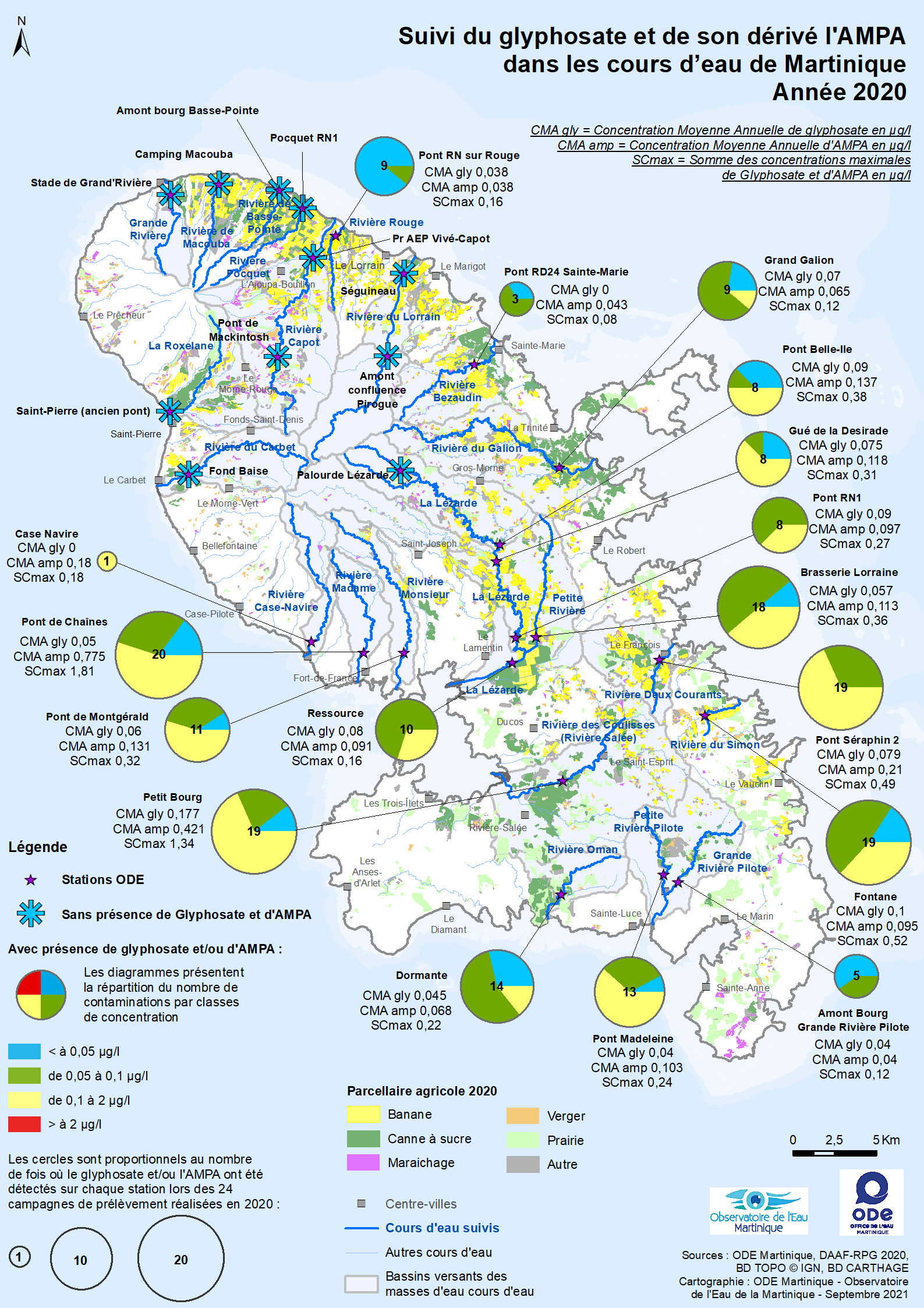 Suivi du glyphosate et de son dérivé l'AMPA dans les cours d'eau de Martinique – Année 2020