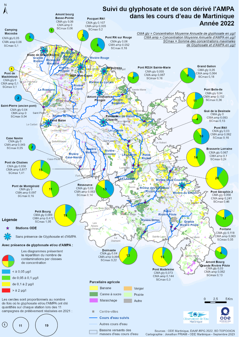 Suivi du glyphosate et de son dérivé l'AMPA dans les cours d'eau de Martinique – Année 2022