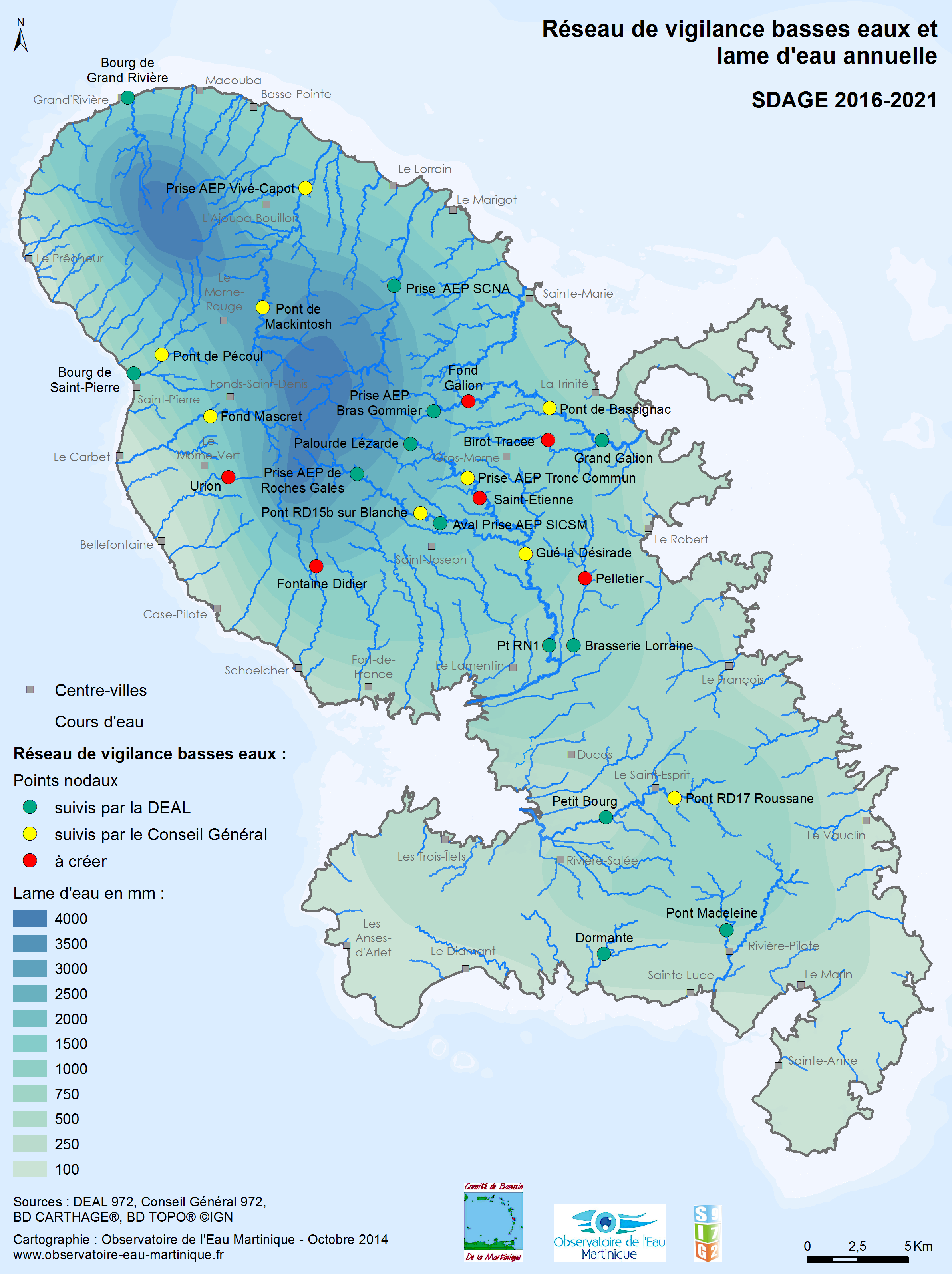 La carte ci-contre présente les stations de mesure hydrométriques du réseau de vigilance basses eaux.