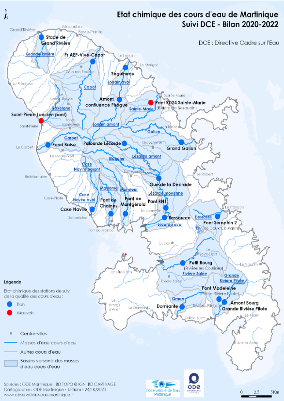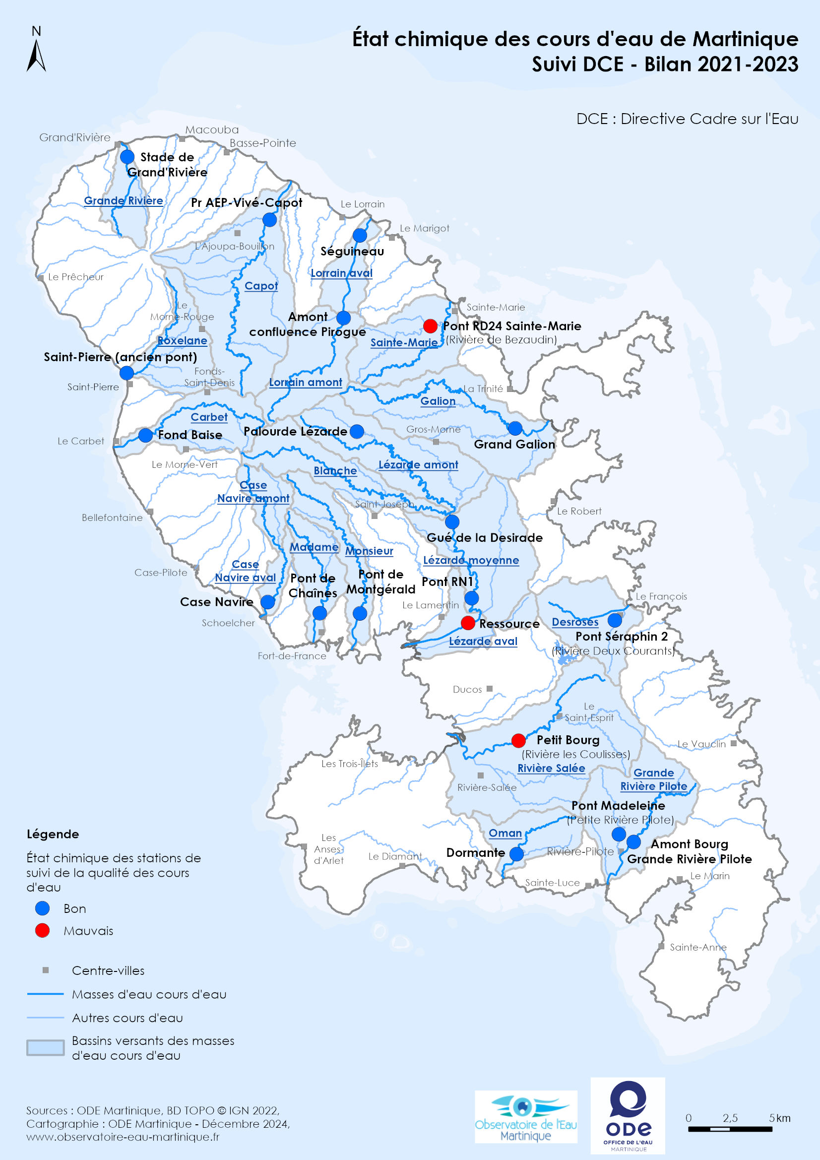 3 stations sont en mauvais état chimique : Petit Bourg, Pont RD24 Sainte Marie et Ressource.