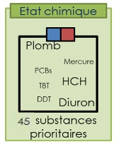 L’état chimique est évalué au regard des normes de concentration de 45 substances dites prioritaires et prioritaires dangereuses.