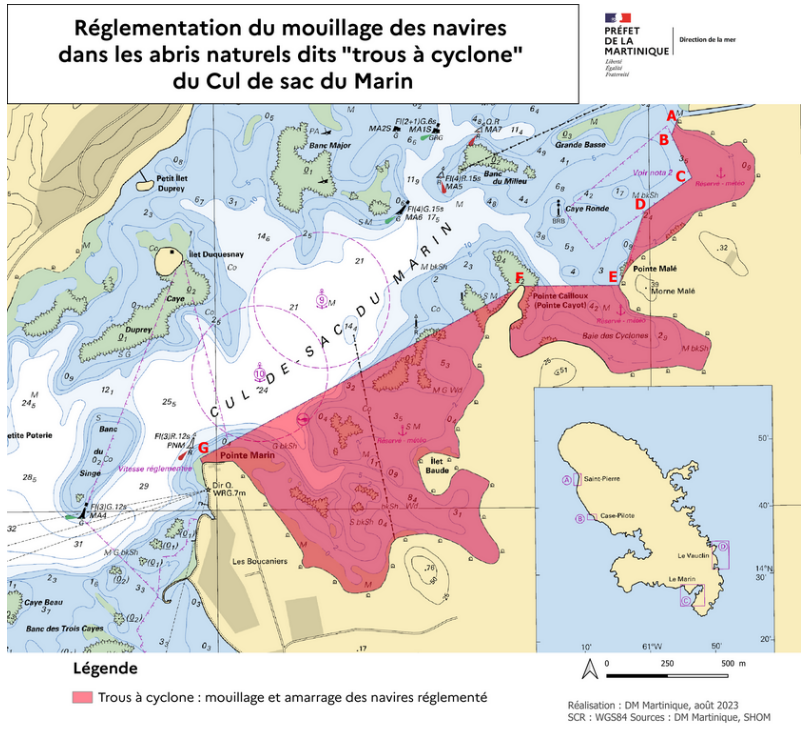 Interdiction de mouillage dans les abris naturels dits “trous à cyclone” du Cul-de-Sac du Marin
