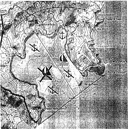 Cet arrêté stipule que le mouillage de tout navire ou embarcation est interdit en tout temps et tout lieu dans cette zone marine protégée qui s’étend du sud de la pointe Borgnèse à la Pointe Philippeaux. L’amarrage ne peut donc se faire que sur les bouées présentes à cet effet en bordure de la zone d’interdiction.