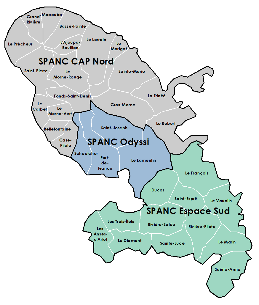 Les 34 communes de la Martinique sont couvertes par un service public d’assainissement non collectif. Pour toute question relative à votre dispositif d’assainissement non collectif, vous devez vous rapprocher du SPANC dont dépend votre commune :